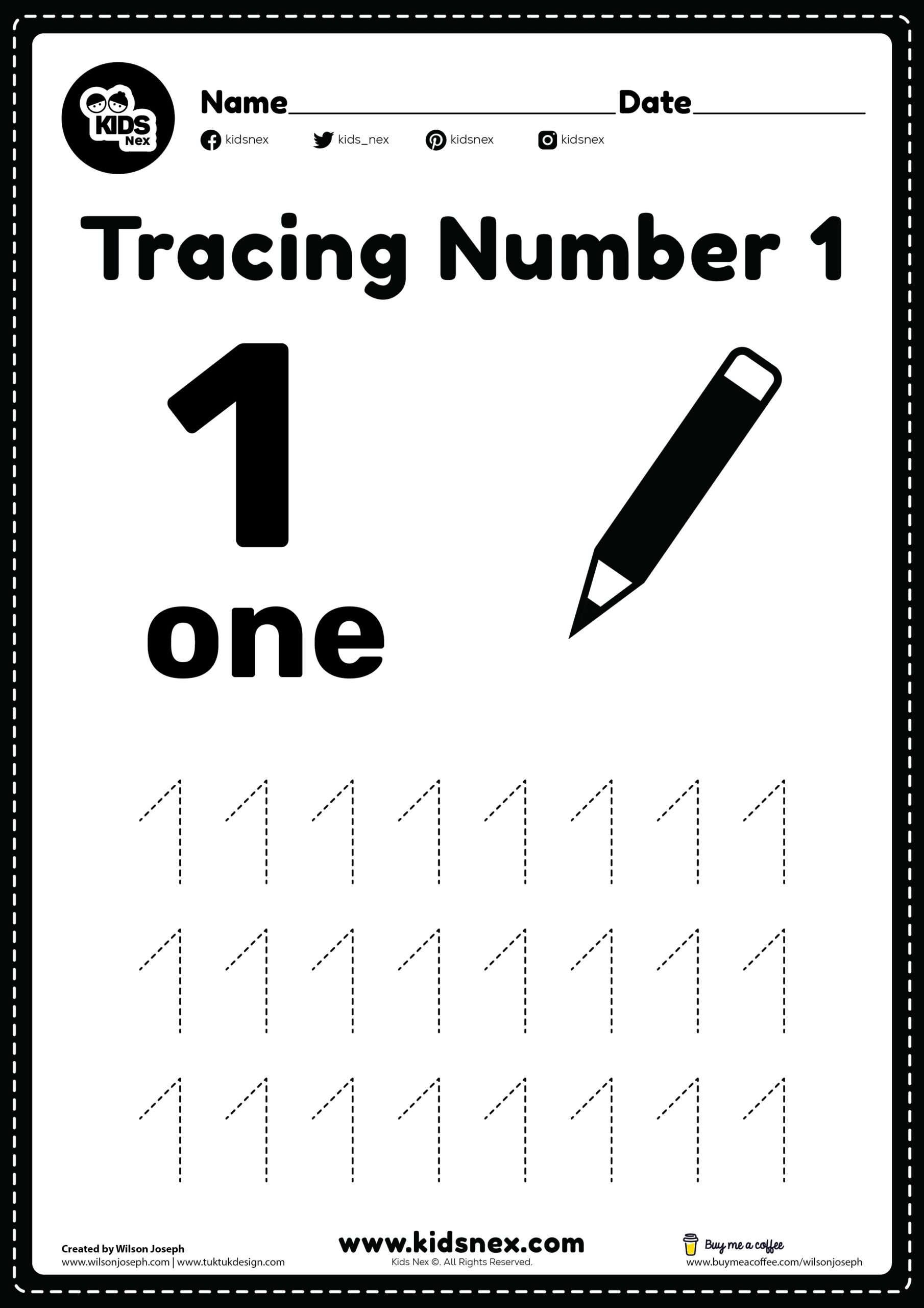 Worksheet For Tracing Number 1 Free Printable KidsNex