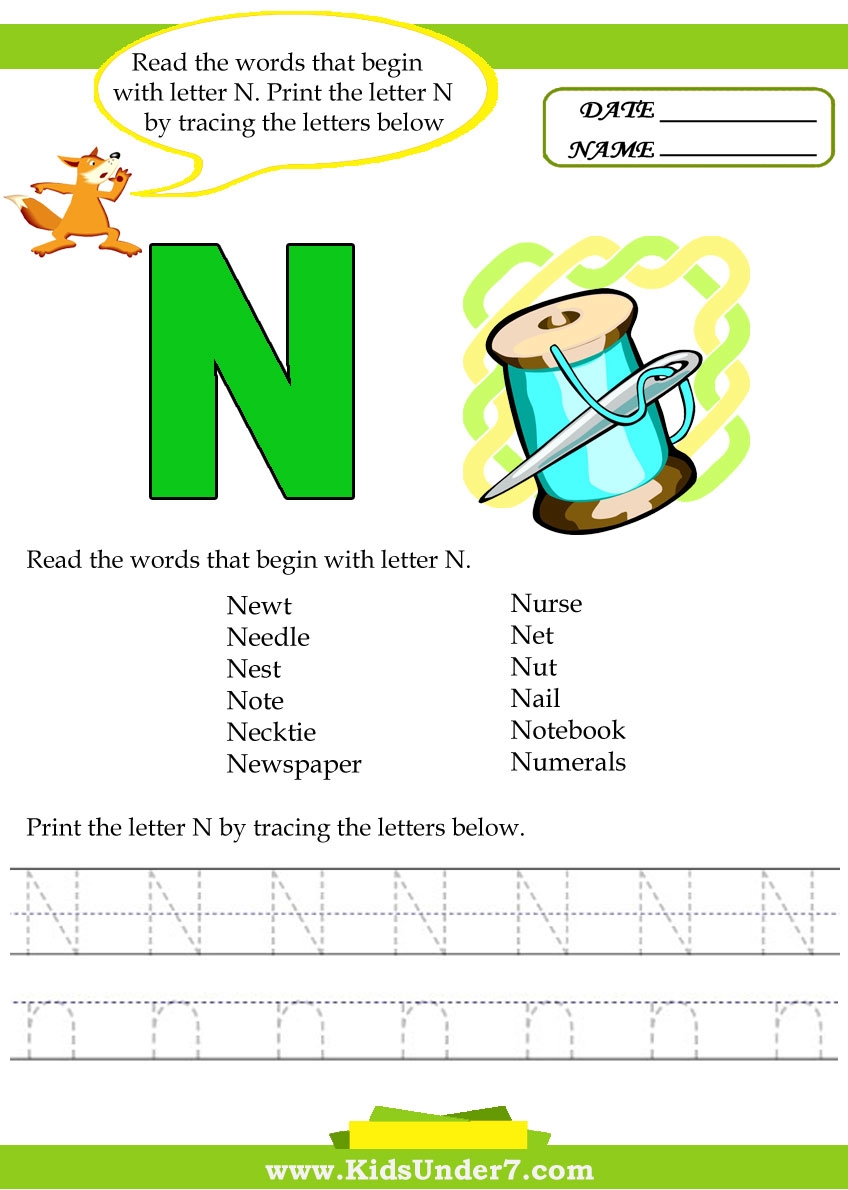 Kids Under 7 Alphabet Worksheets Trace And Print Letter N