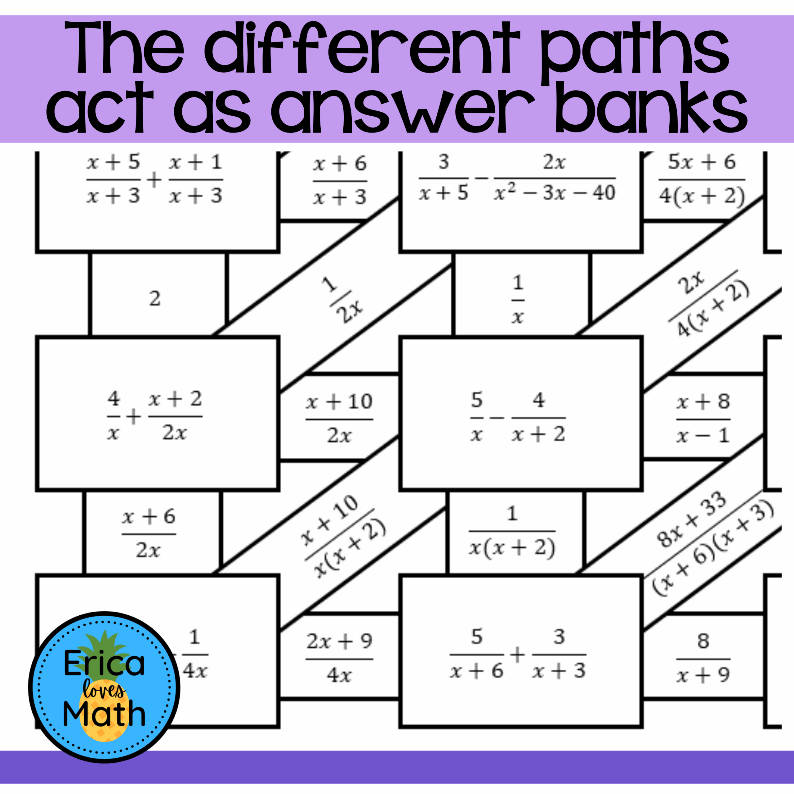 Adding U0026 Subtracting Rational Expressions Maze Worksheet Activity Made By Teachers