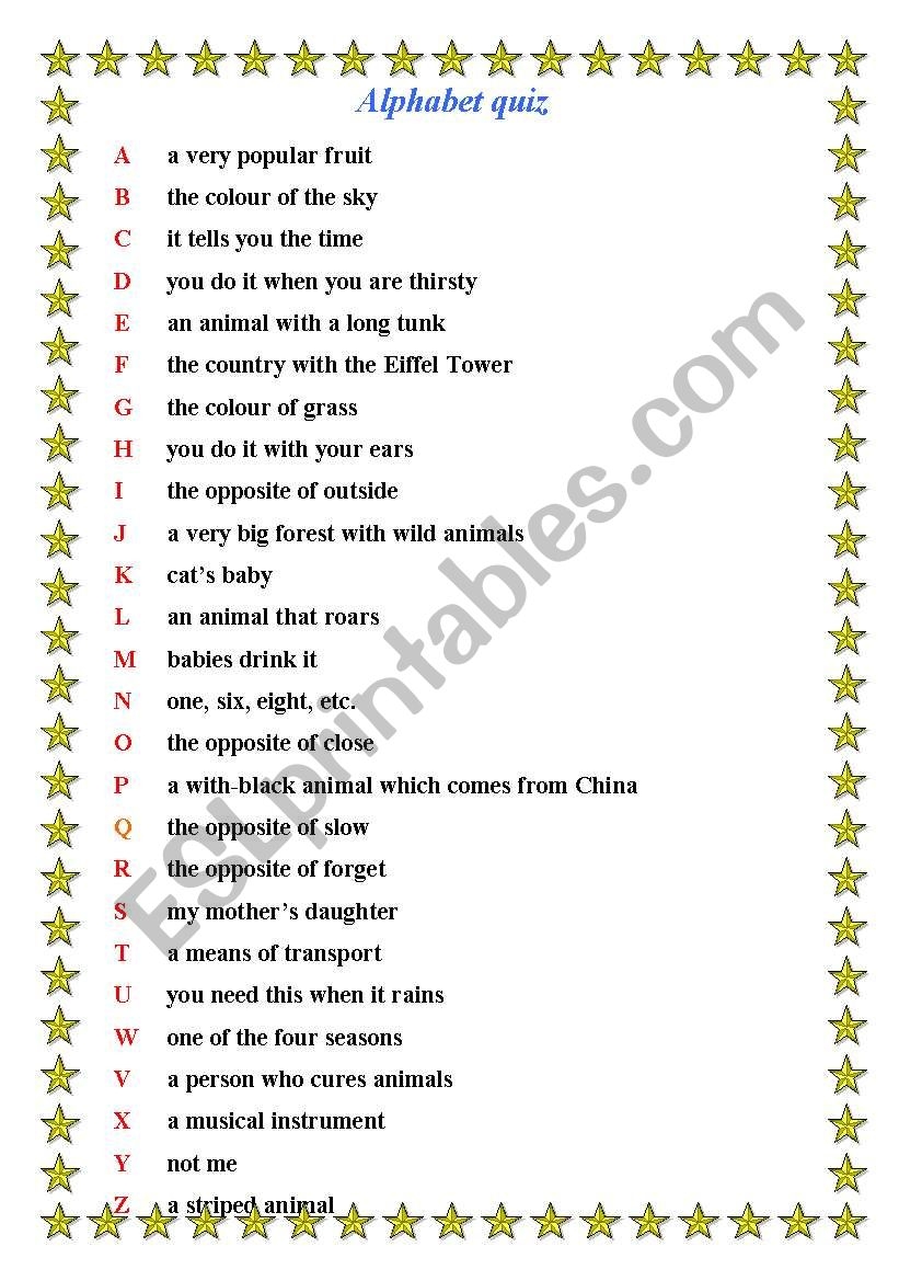 Alphabet Quiz ESL Worksheet By Gjoanna