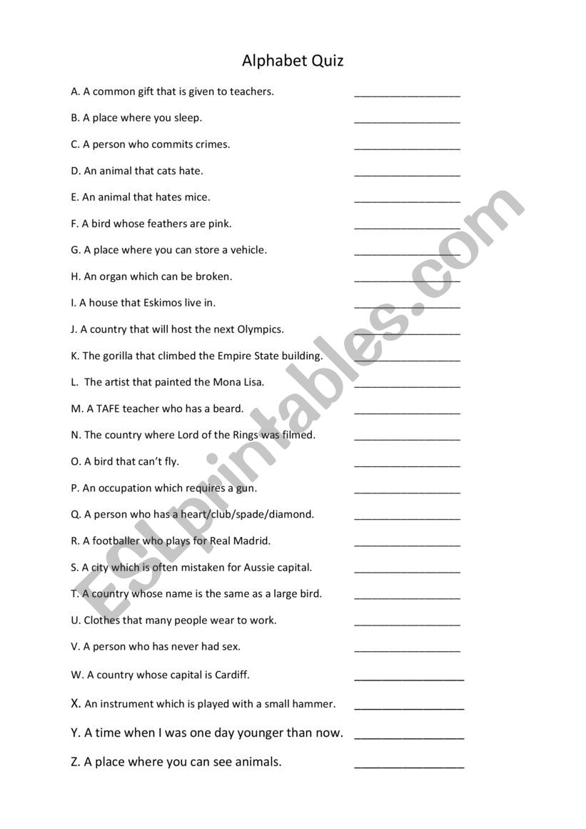 Alphabet Quiz ESL Worksheet By Limosine