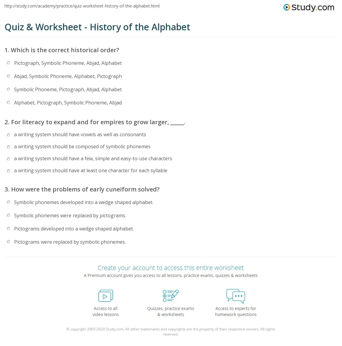 Quiz U0026 Worksheet History Of The Alphabet Study