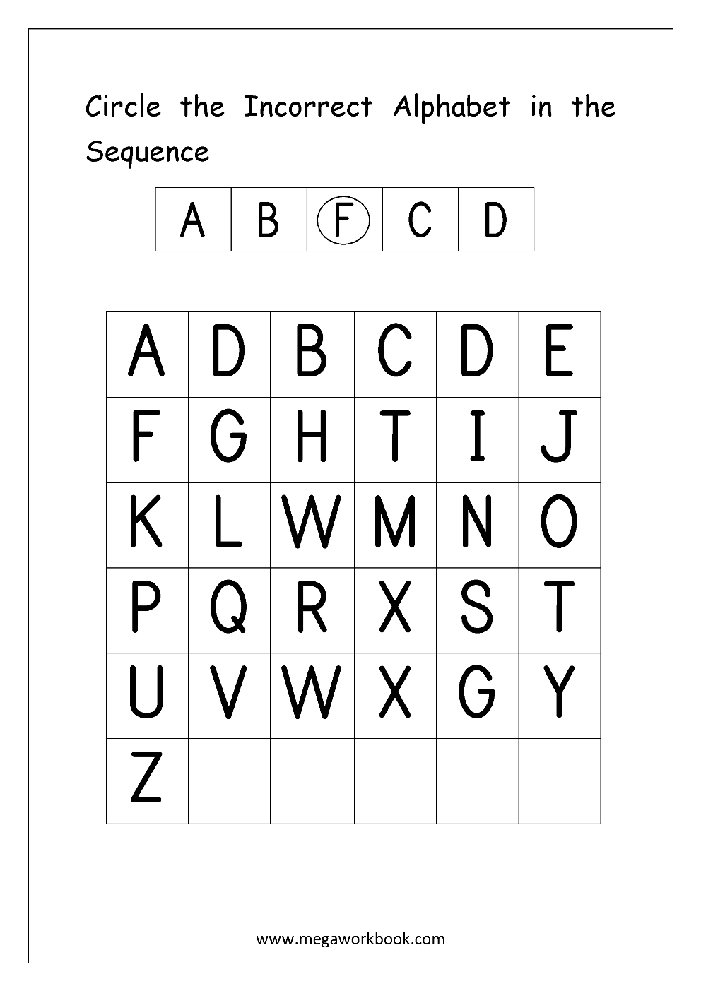 Free English Worksheets Alphabetical Sequence Alphabetical Order Missing Letters MegaWorkbook