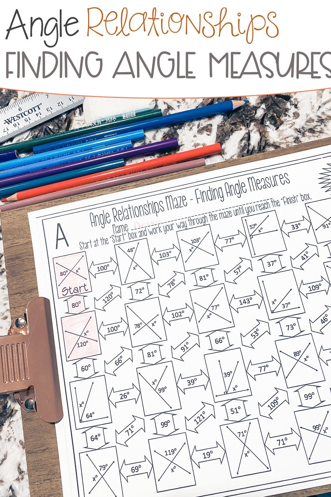 Angle Relationships Worksheet Finding Angle Measures Maze Activity