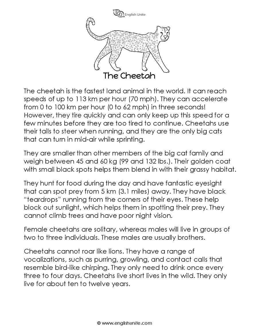 Reading Comprehension Cheetahs ESL Worksheet By Abitano
