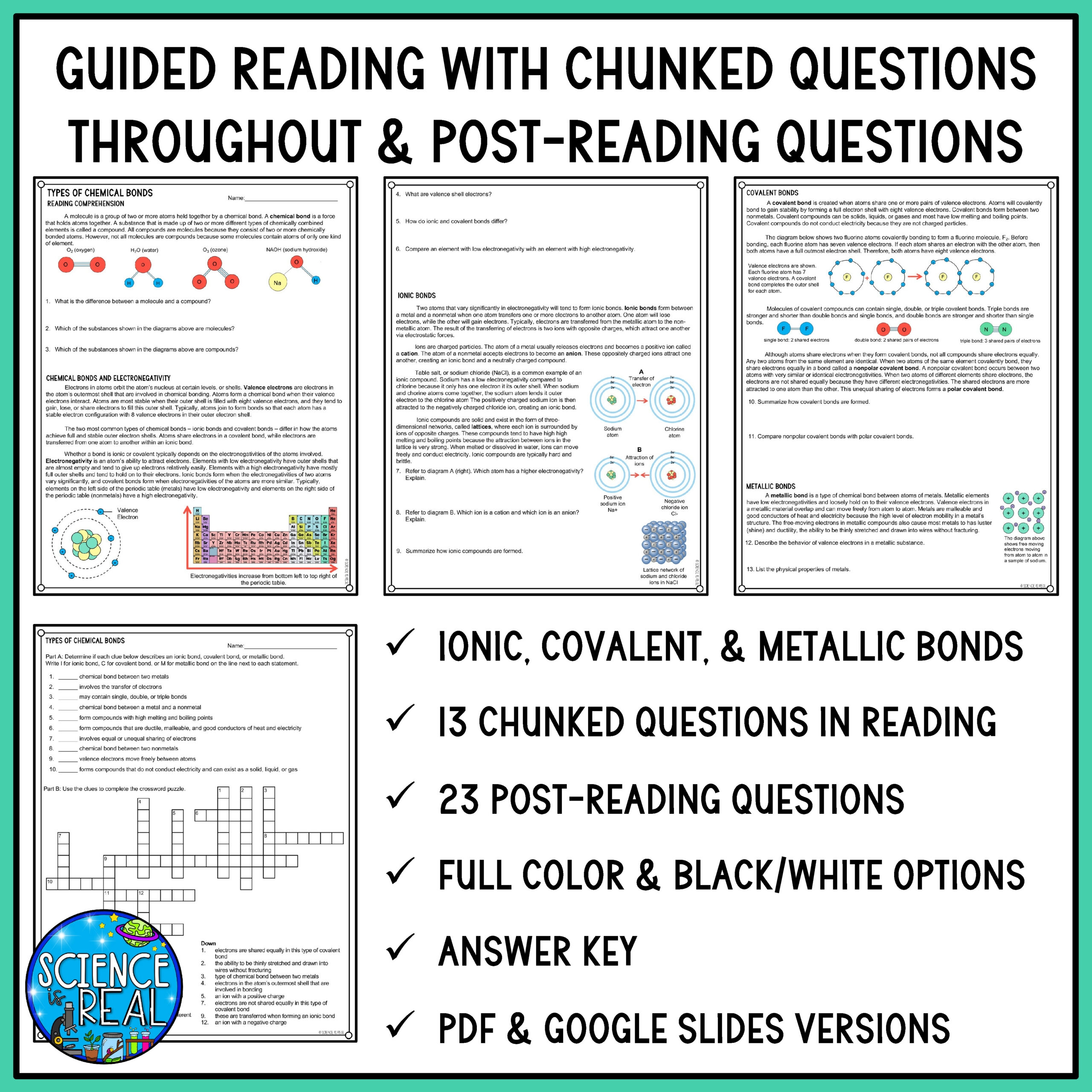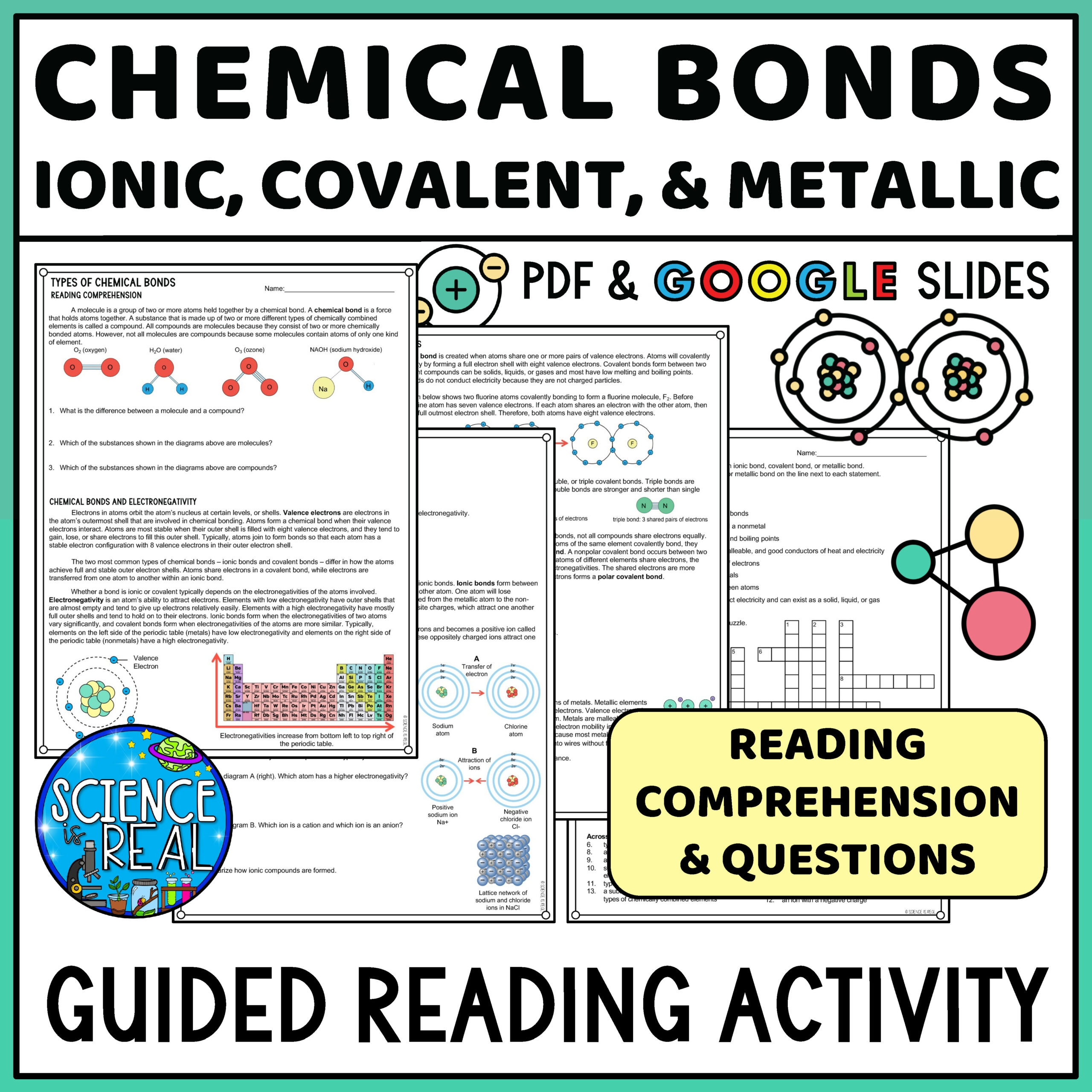 Chemical Bonds Guided Reading Comprehension Ionic Covalent