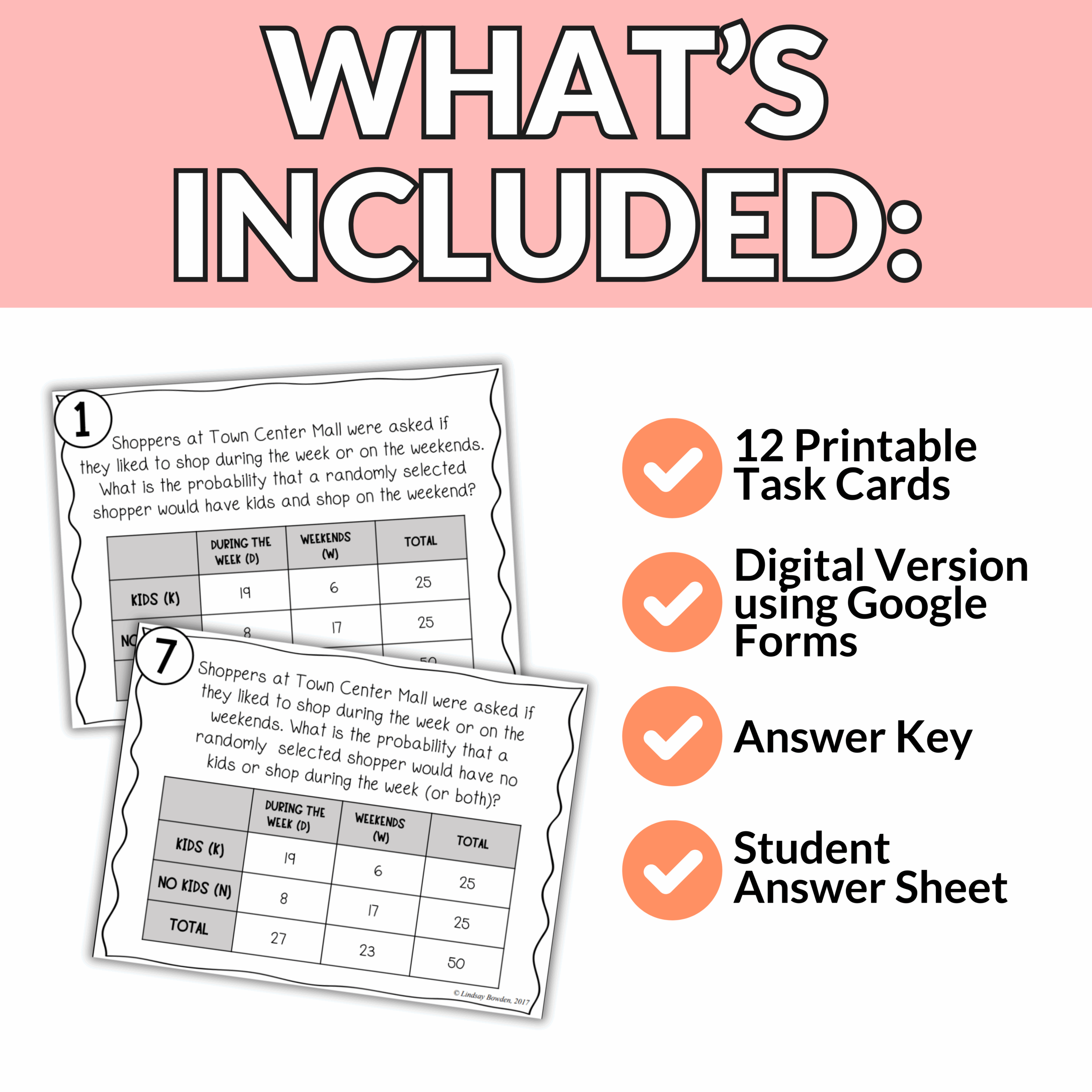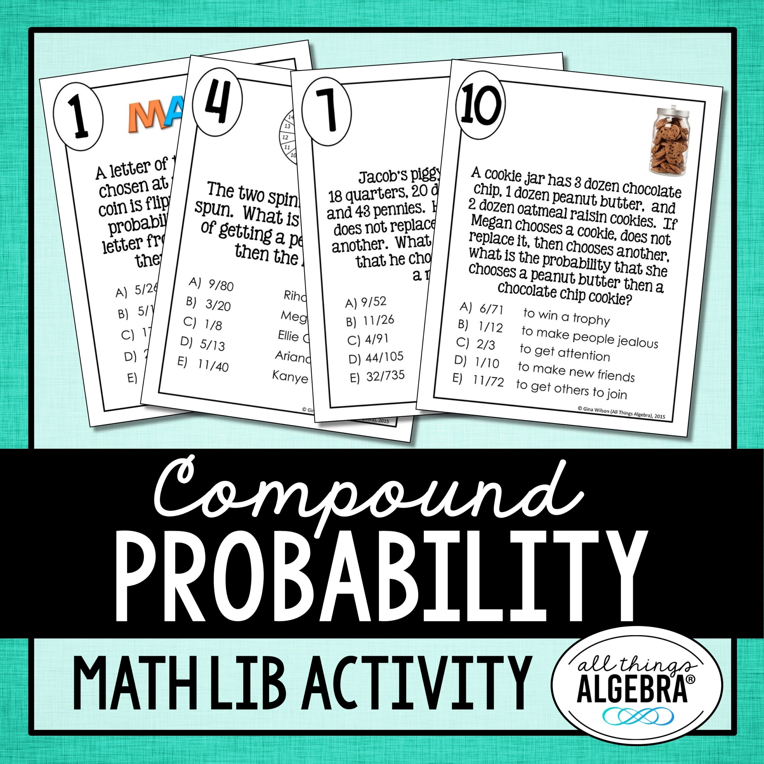 Compound Probability Task Cards Lindsay Bowden