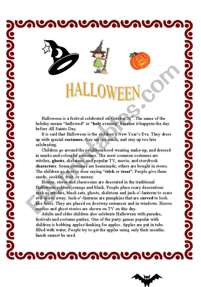 HALLOWEEN Reading Comprehension activities ESL Worksheet By Emilia 1