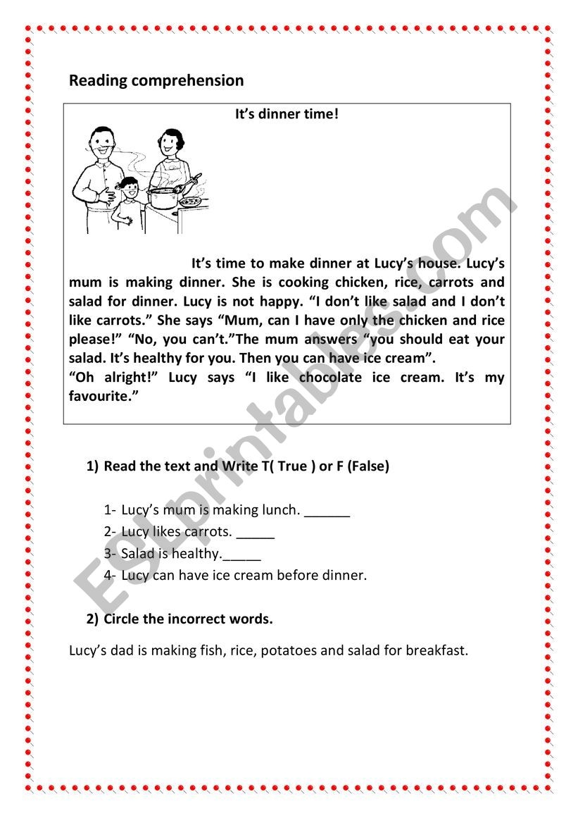 Esl reading Comprehension Activity Topic Family Meal ESL Worksheet By Chamix