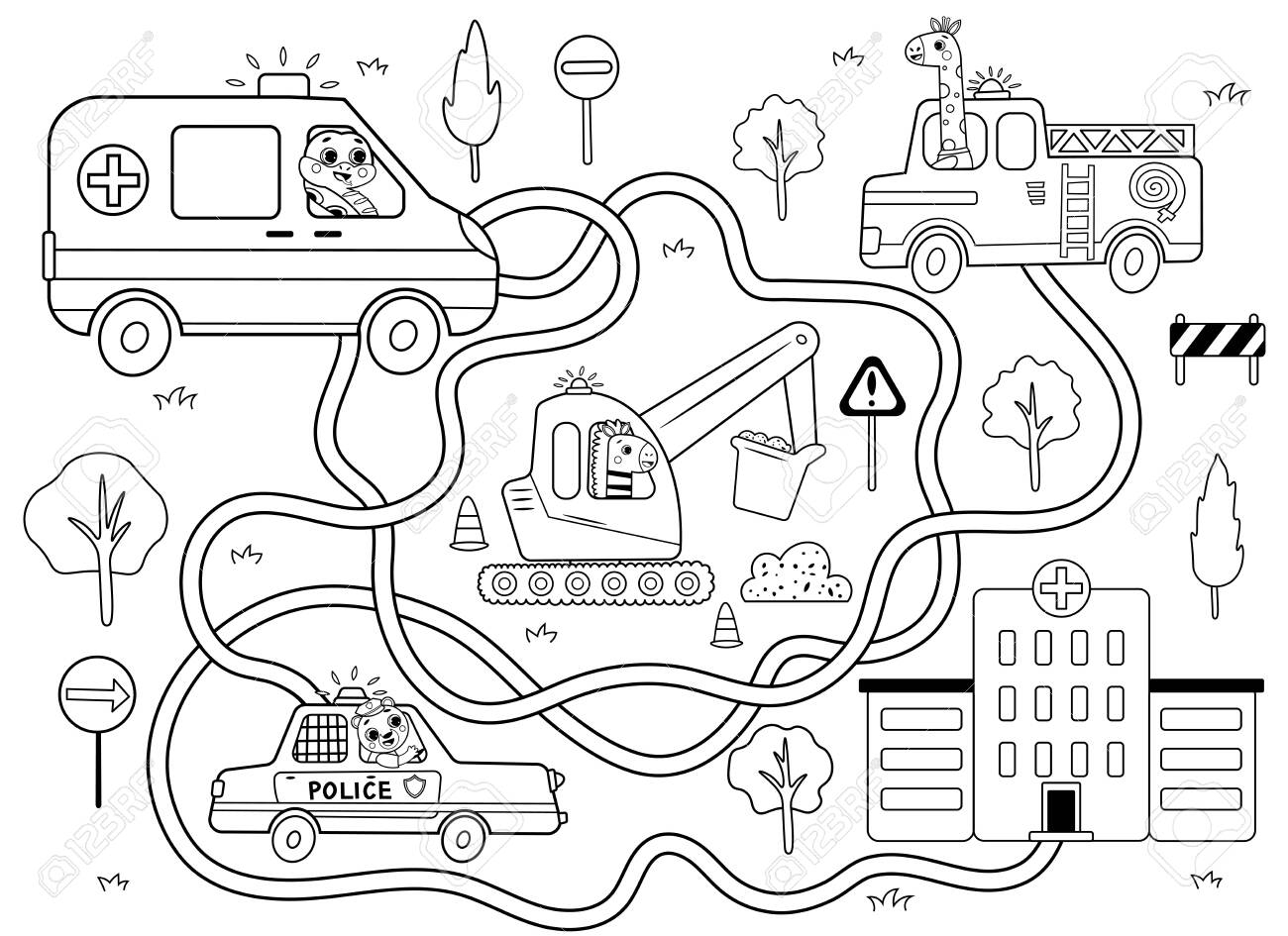 With this worksheet, your child will navigate through a maze filled with various emergency vehicles, such as fire trucks, ambulances, and police cars. Not only will they have a blast trying to find their way through the maze, but they will also learn about the important role these vehicles play in keeping our communities safe.