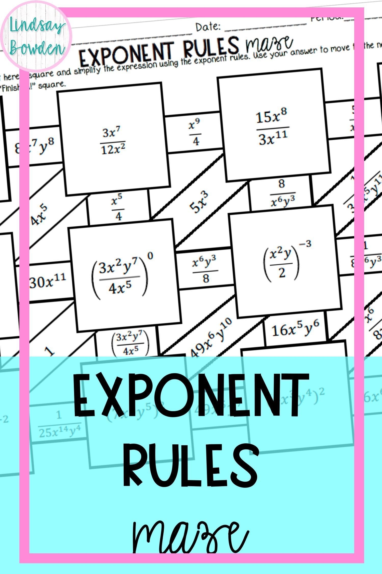 Exponent Rules Digital Maze Lindsay Bowden