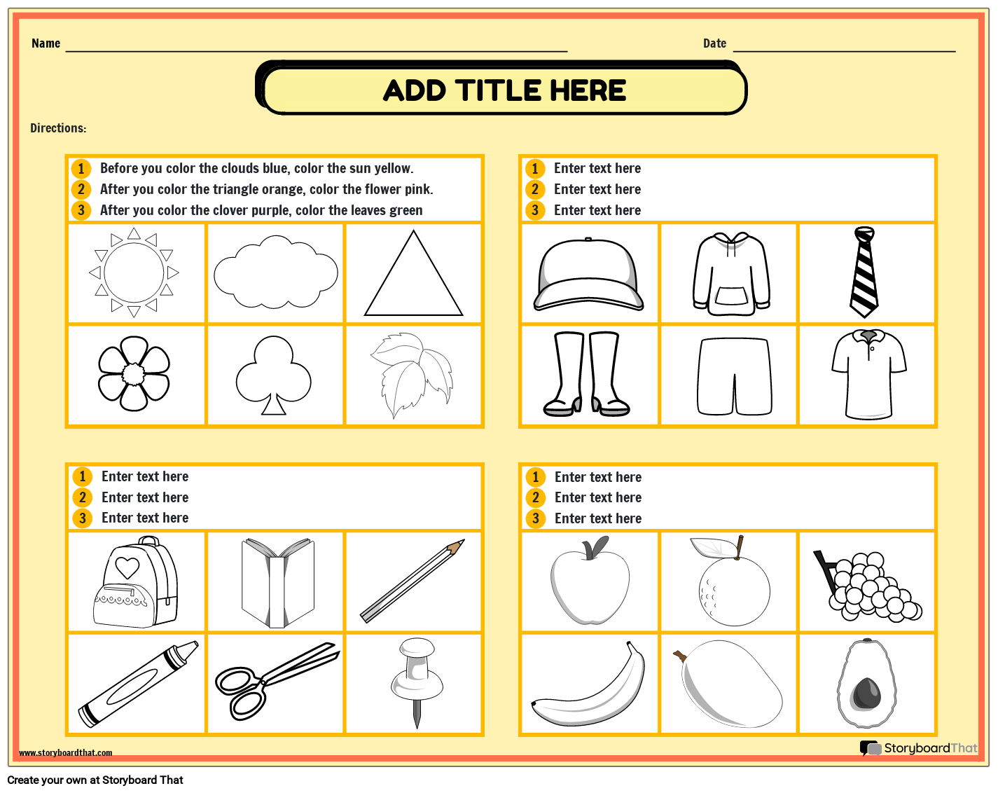Following Directions Worksheets For Students StoryboardThat