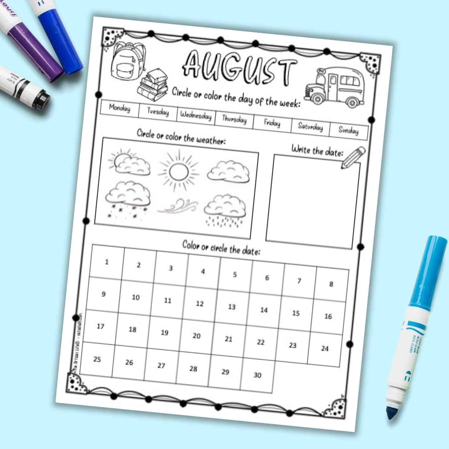 Monthly Calendar Worksheets August Freebies Breezy Special Ed