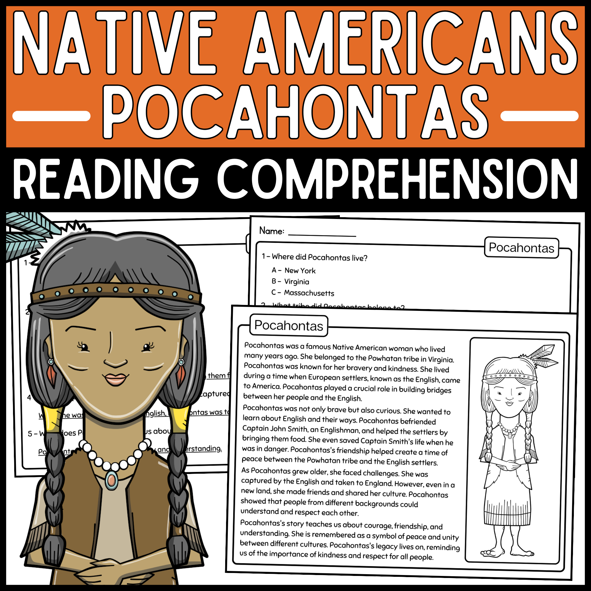 Native American Heritage Month Pocahontas Worksheets Reading Comprehension Made By Teachers