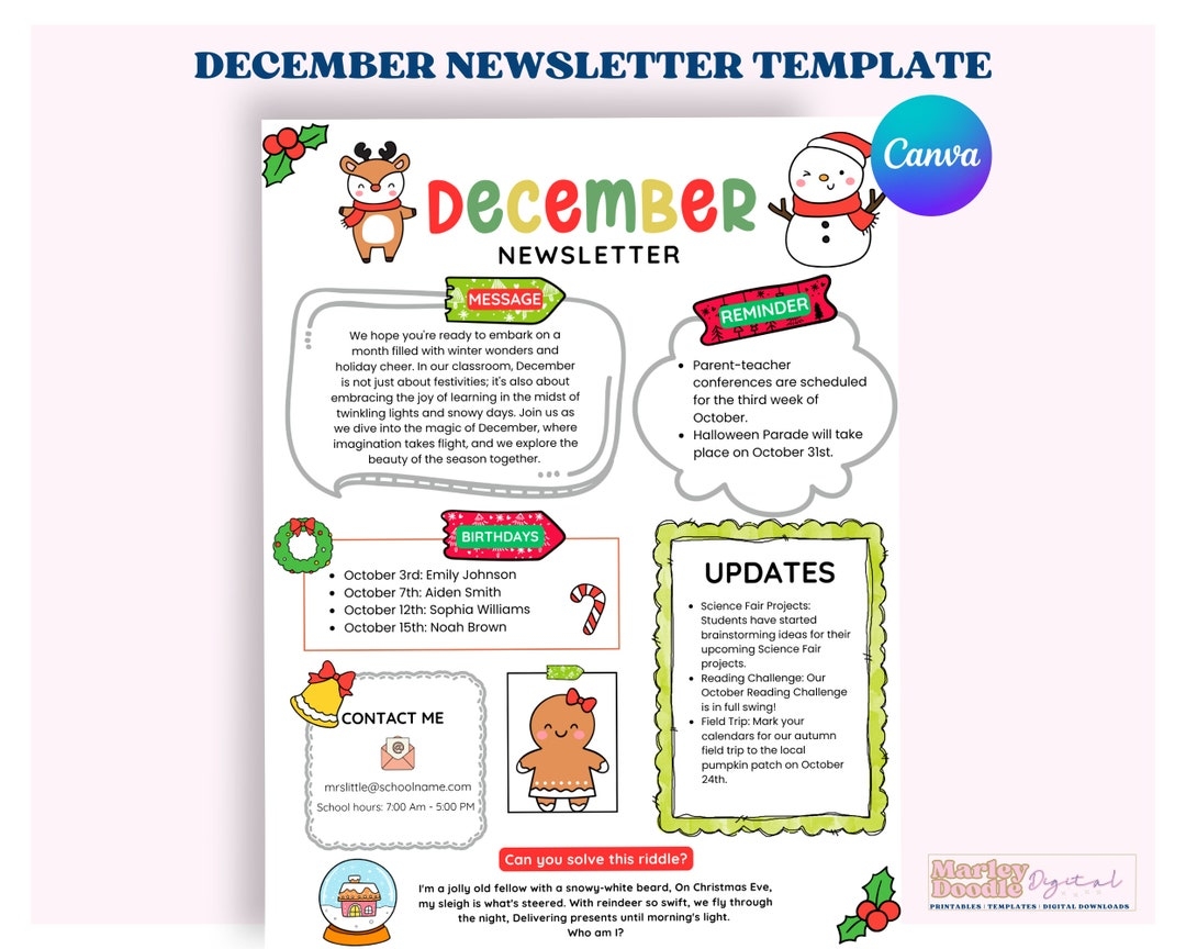 December Newsletter Template Winter Newsletter Teacher Template PTO Newsletter Classroom Newsletter Etsy
