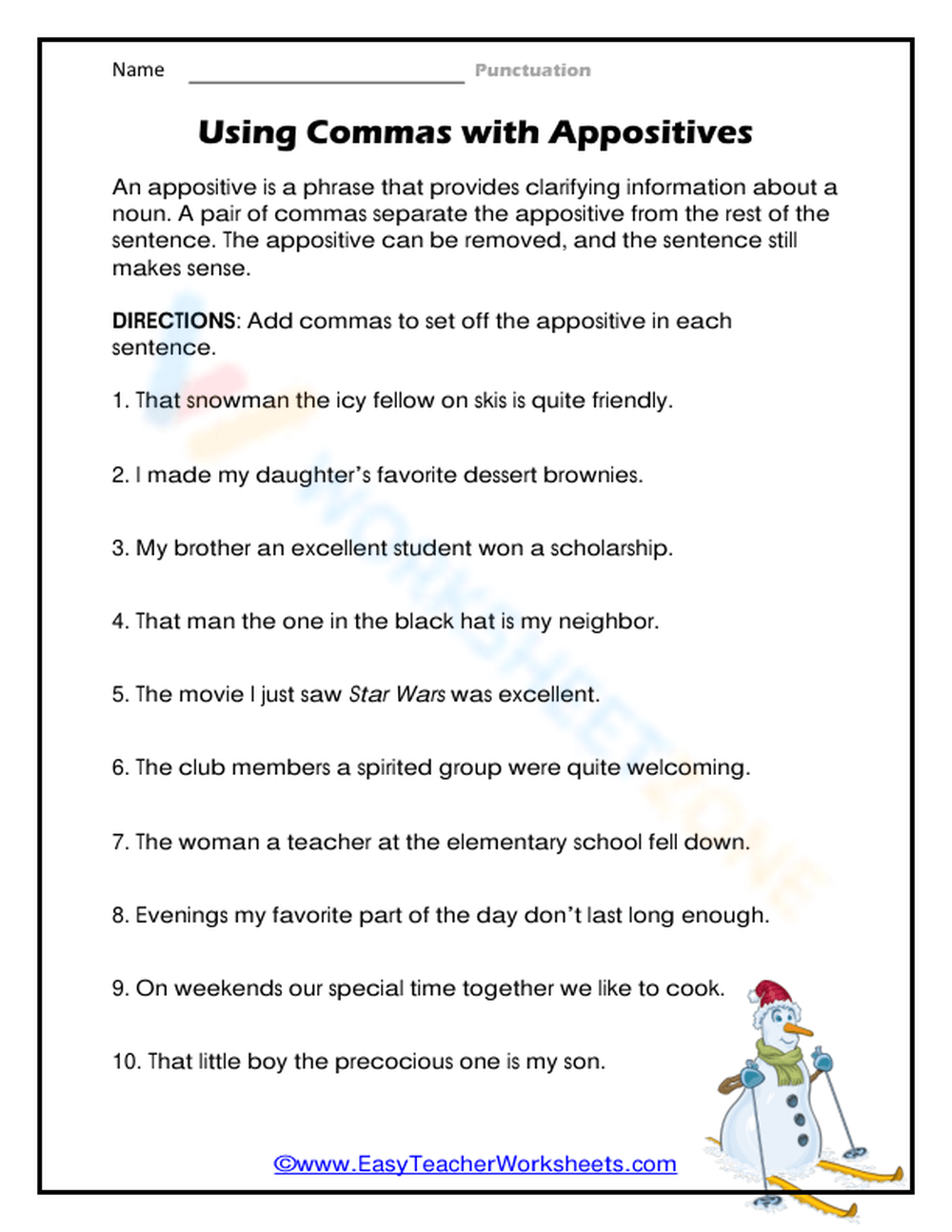 Free Commas With Appositives Worksheet Download Free Commas With Appositives Worksheet Png Images Free Worksheets On Clipart Library