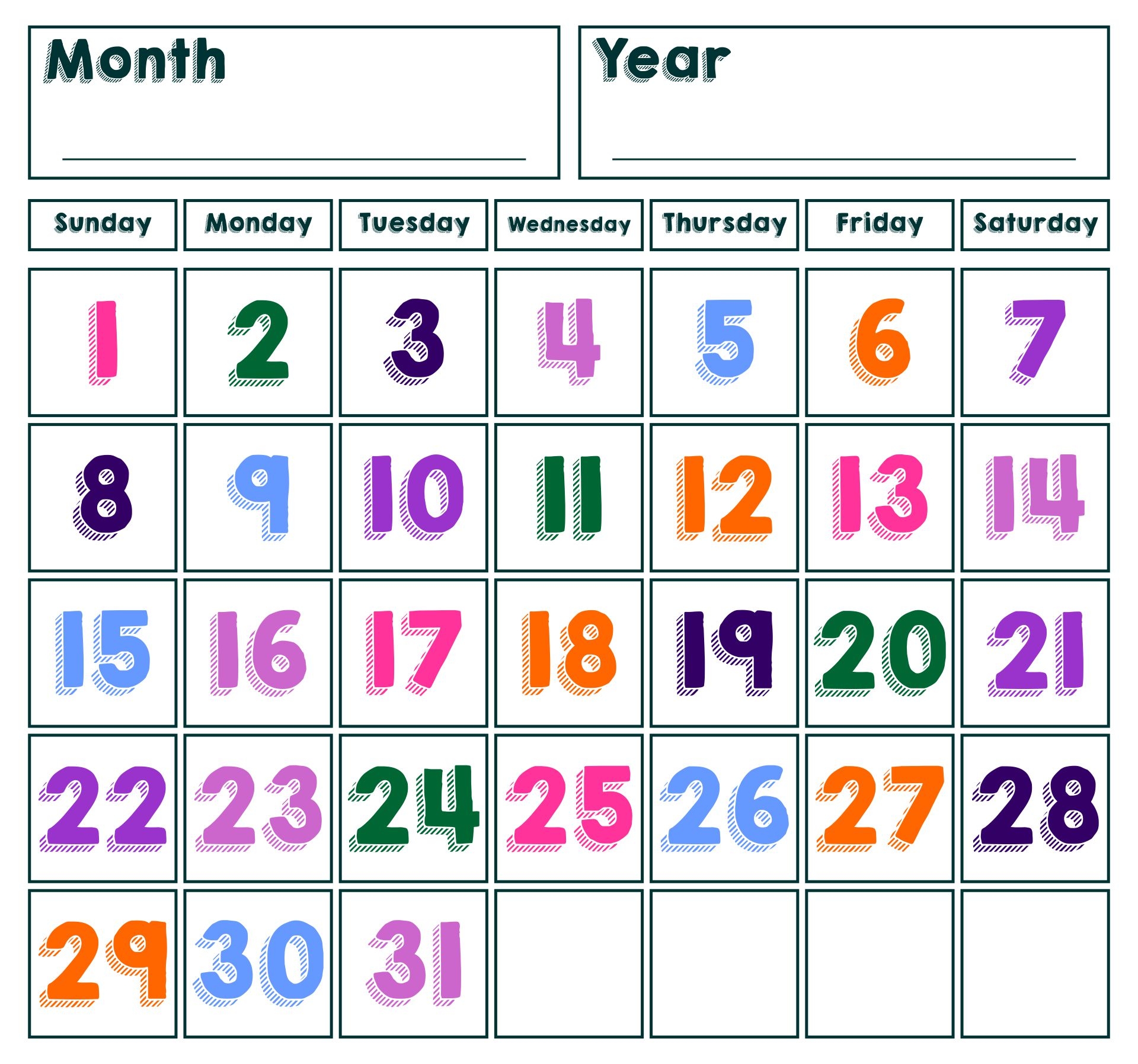 These adorable and colorful numbers are perfect for helping your little one learn to count and recognize numbers. Simply print them out, cut them, and use them to create a fun and engaging calendar activity with your child.