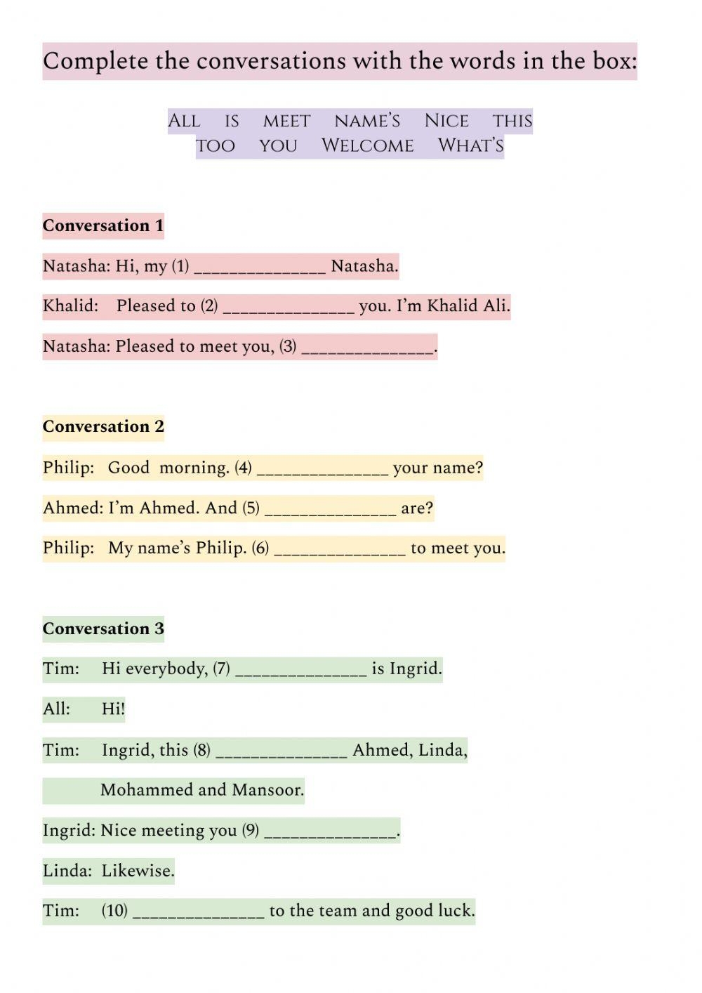 Basic Conversation Worksheet Live Worksheets Worksheets Library