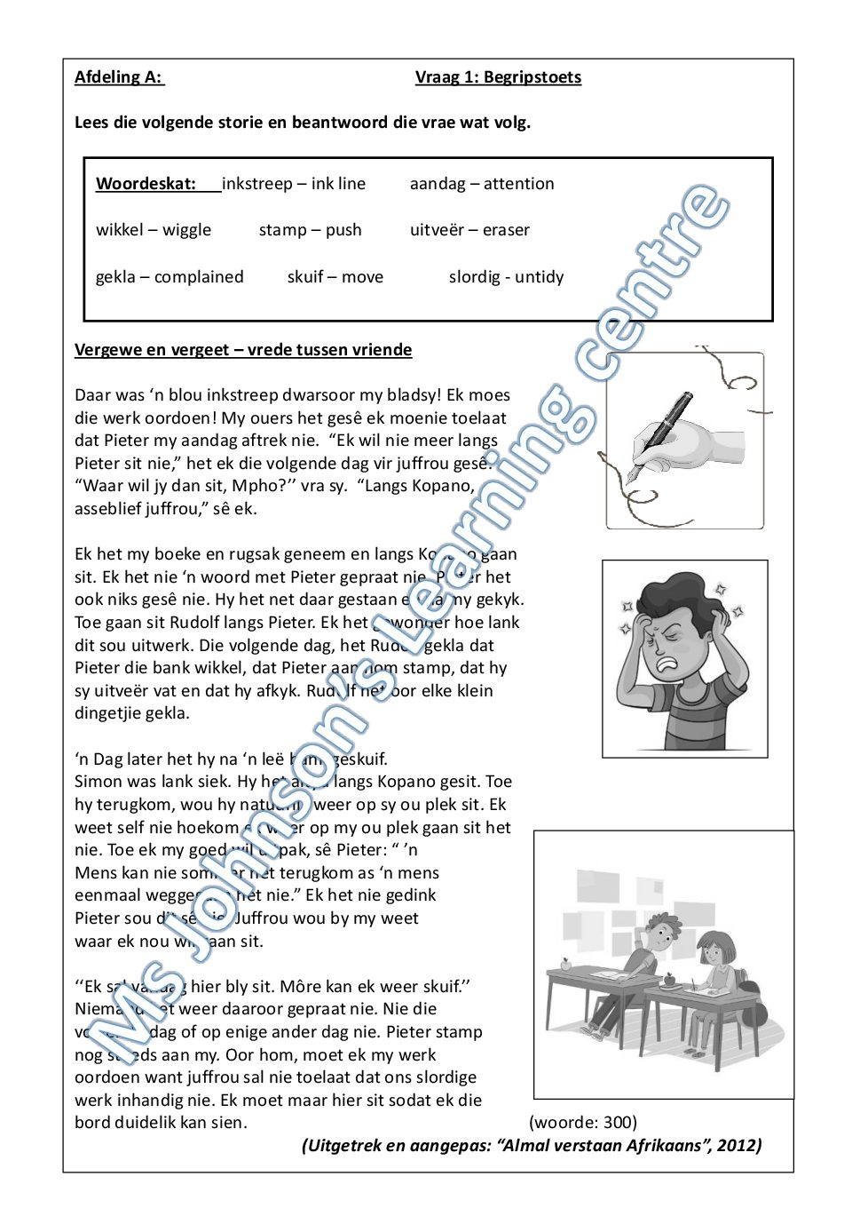 Afrikaans Grade 7 FAL Test Begripstoets Visueel Opsomming Taal