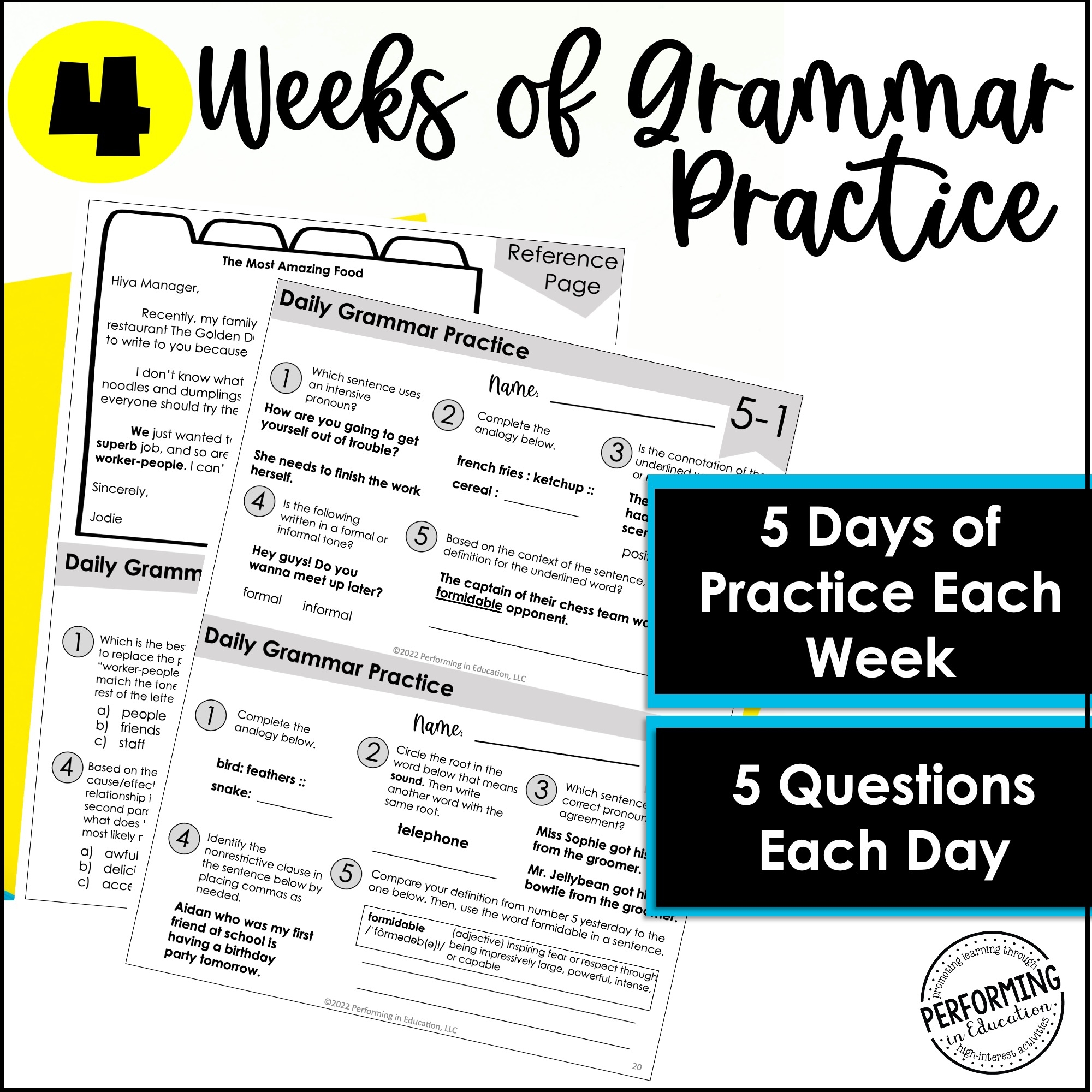 FREE Month Long Daily Grammar Practice 7th Grade Grammar Spiral Review