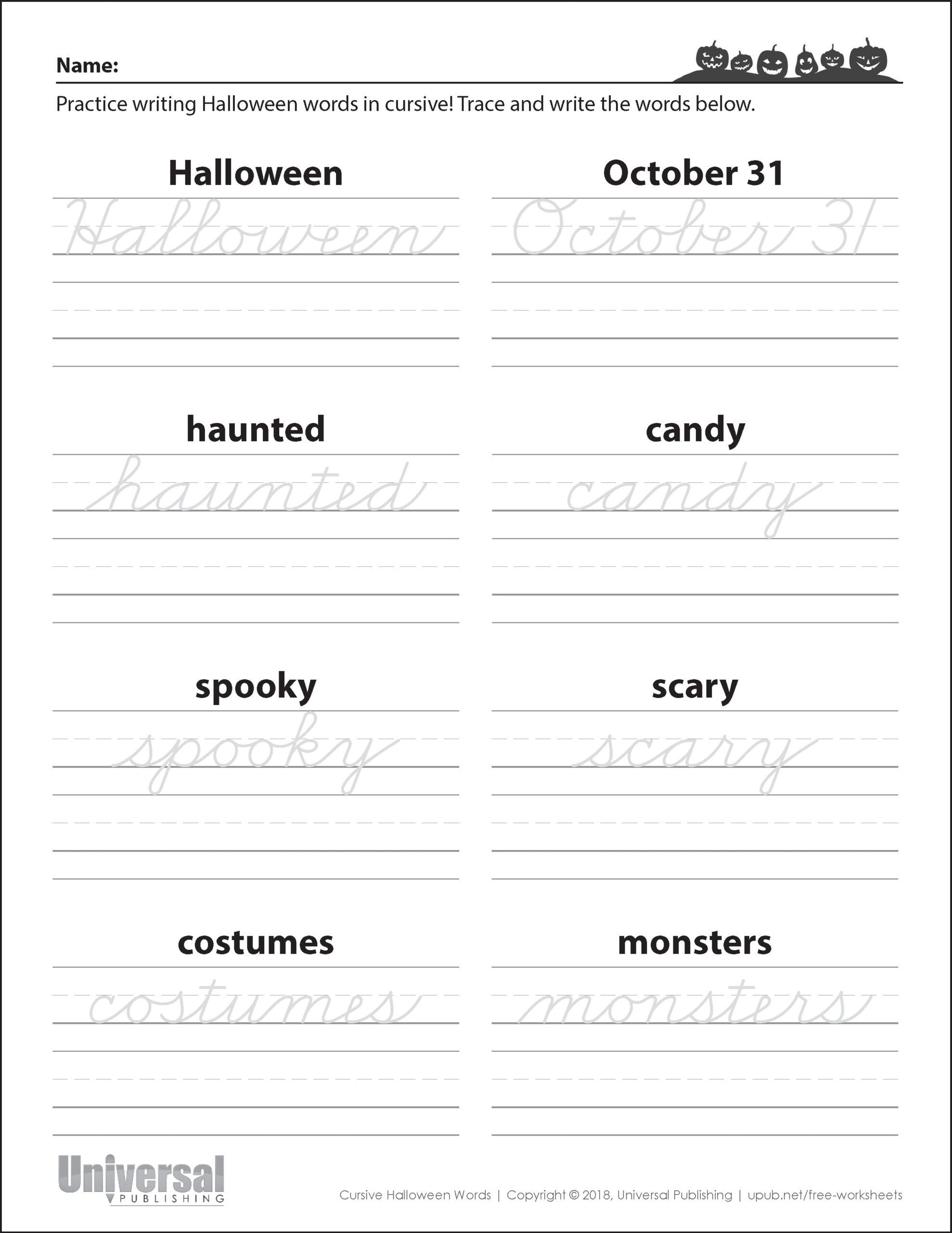 Free Printable Halloween Handwriting Worksheets