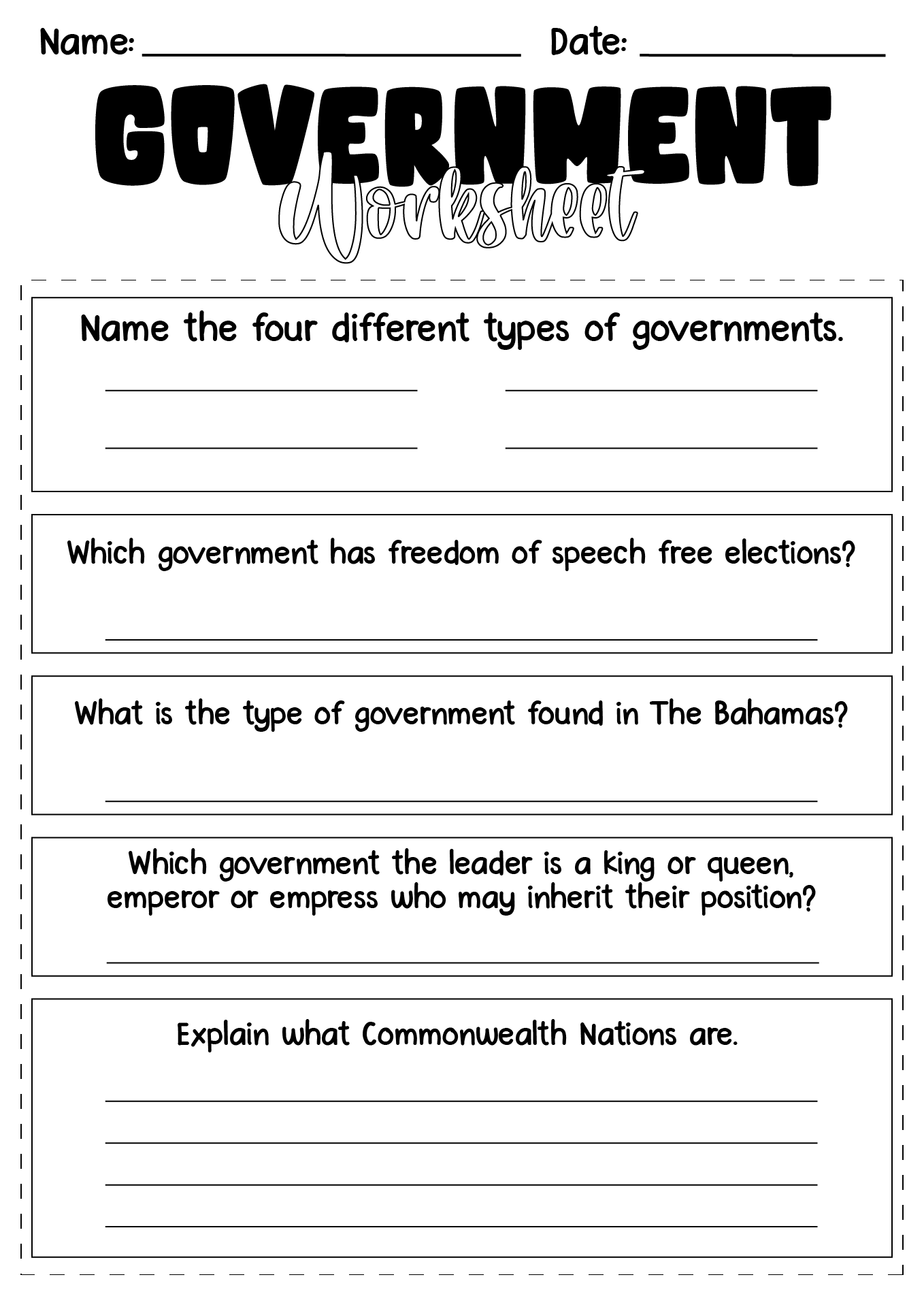 15 Different Types Of Government Worksheet Free PDF At Worksheeto