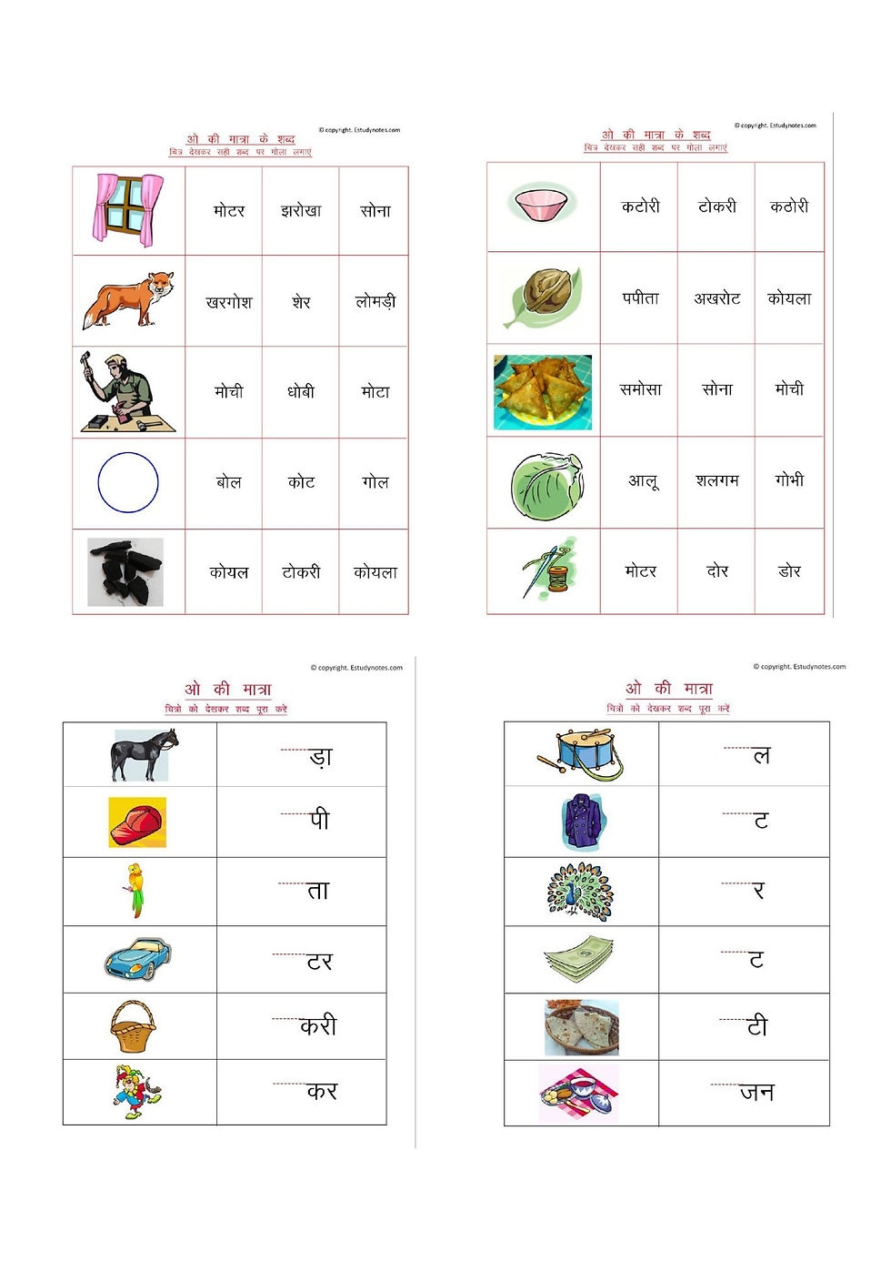 Grade 1 Hindi Worksheets O Ki Matra Estudynotes