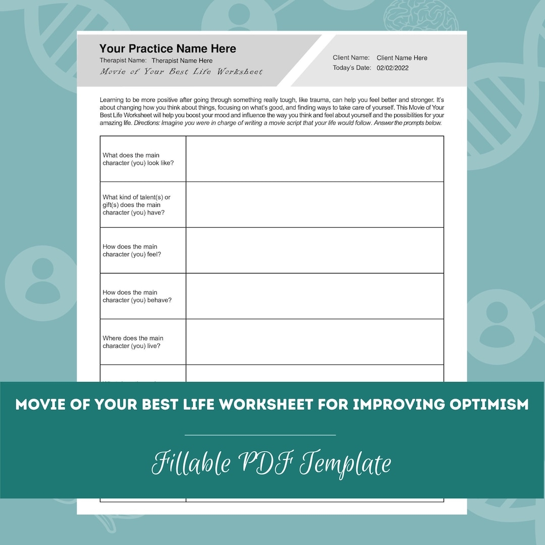 Movie Of Your Best Life Worksheet For Improving Optimism Editable Fillable PDF Template For Counselors Psychologists Therapists Etsy