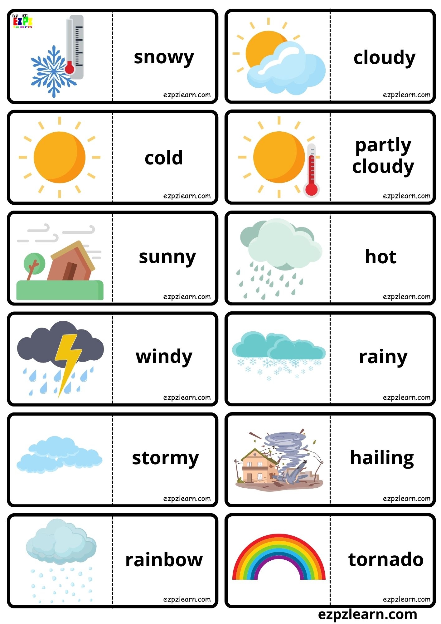 Weather Vocabulary Dominoes Matching Game For Kids And English Language Learners Free PDF Download Ezpzlearn