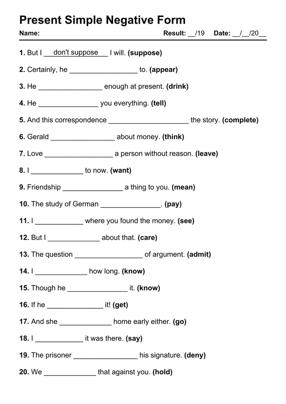 Printable Grammar Simple Present Tense Verb Worksheets With Answers For Grade 1 Made By Teachers