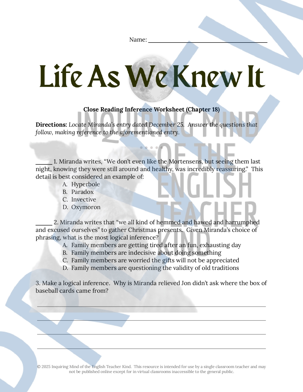 Inferences Worksheet 2 Reading Activity