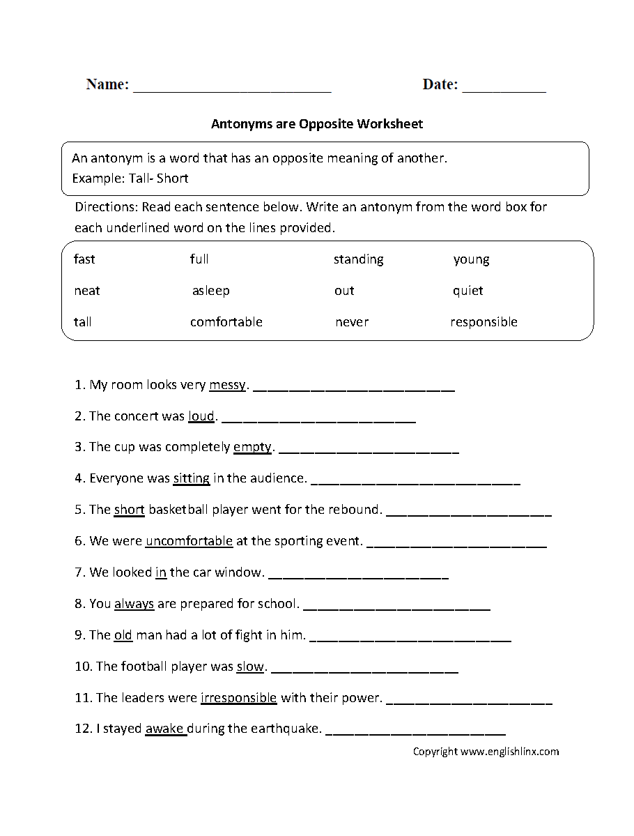 Customize Free Printable Synonyms And Antonyms Worksheets
