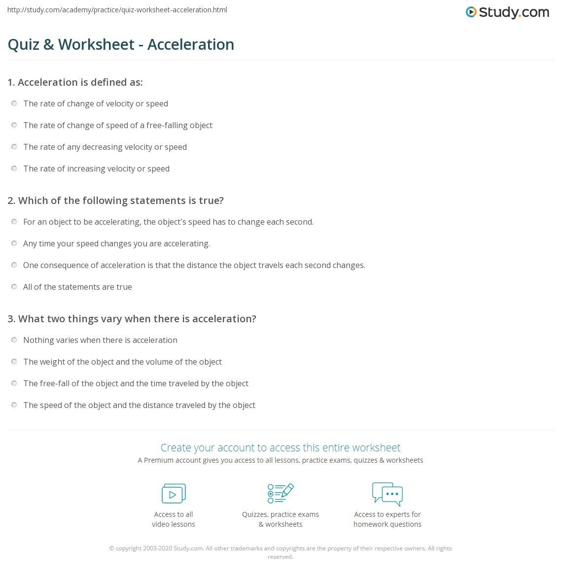 Quiz U0026 Worksheet Acceleration Study