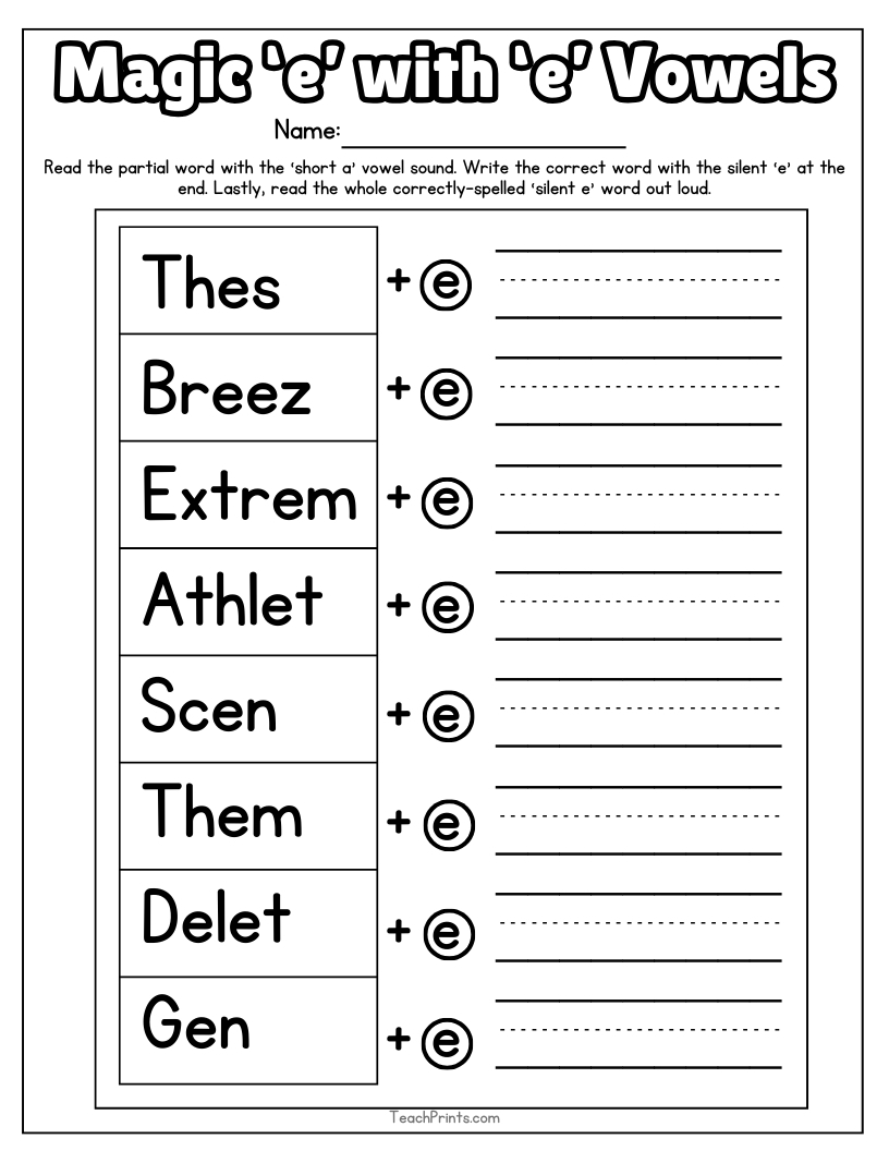13 Magic E Worksheets Free PDF Printables Teach Prints