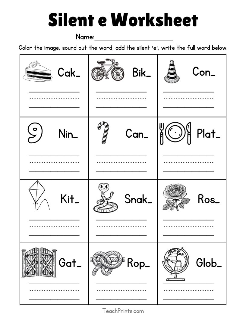 13 Silent E Worksheets Free PDF Printables Teach Prints