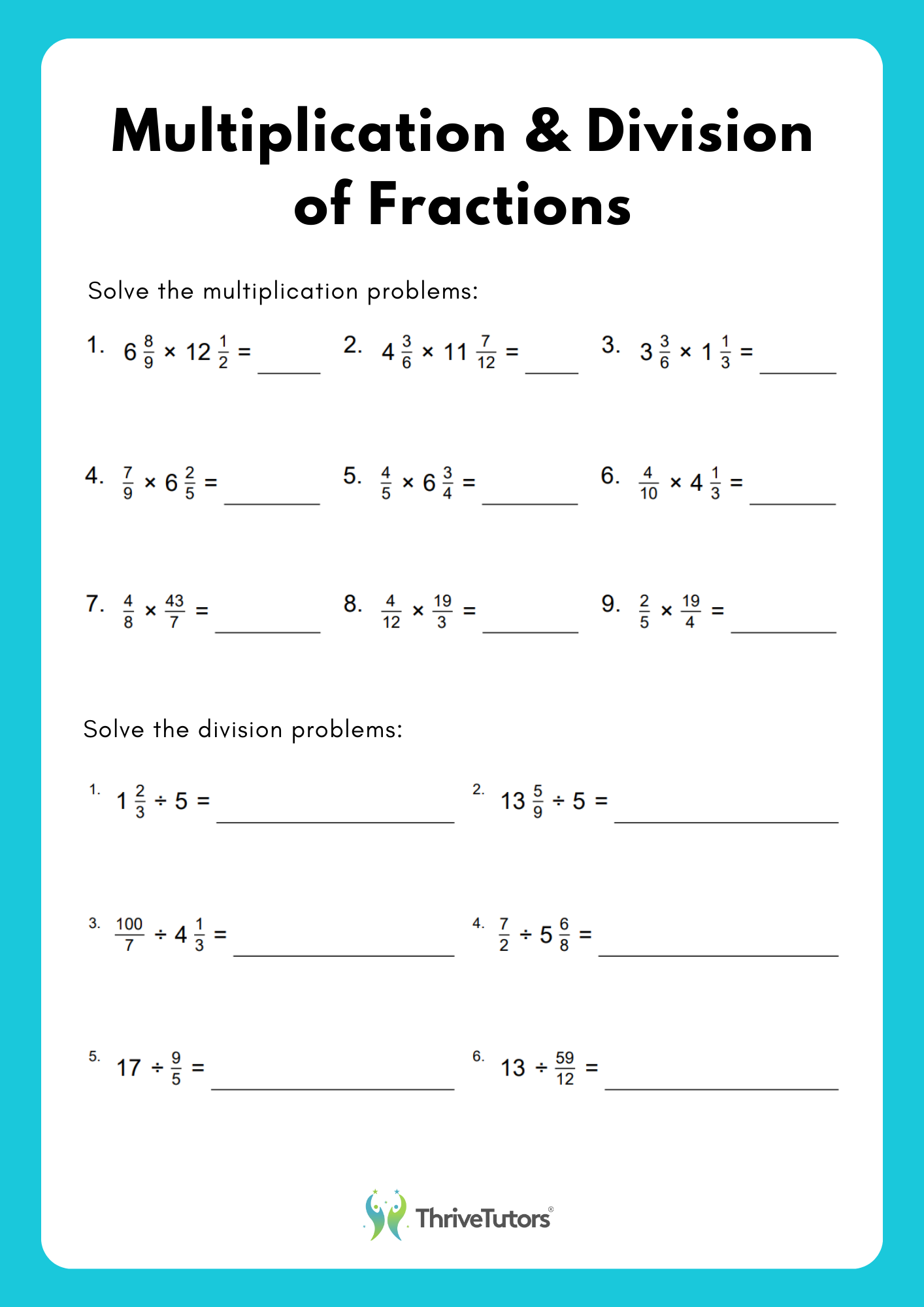 Year 6 Maths Worksheets ThriveTutors Online Tutoring Platform