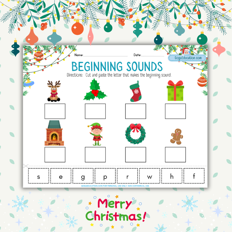 Beginning Sounds Christmas Worksheet Gogu Education