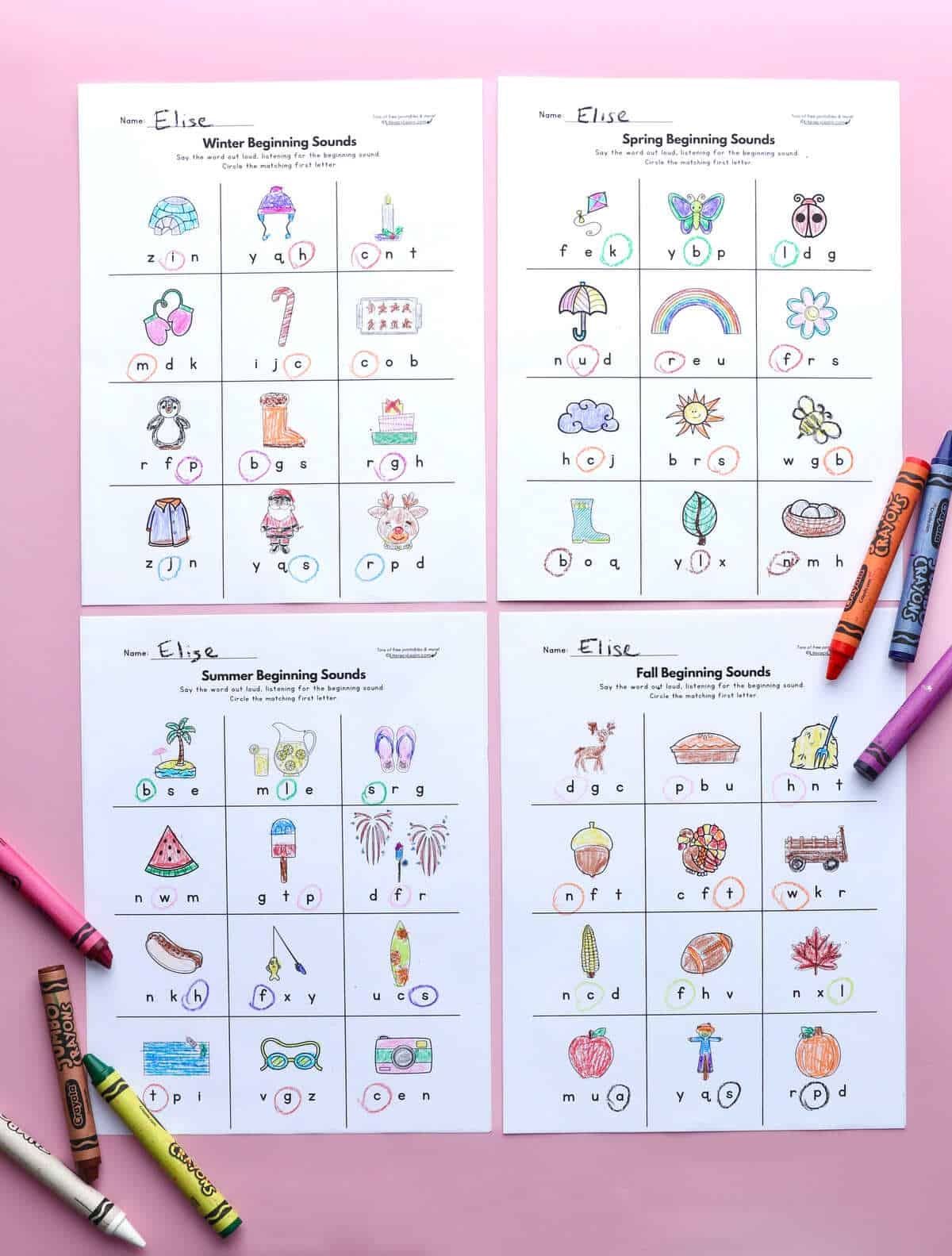 Each worksheet features a cute reindeer image along with a set of pictures representing different words. Children will have to identify the beginning sound of each word and match it to the correct letter on the reindeer’s antlers.
