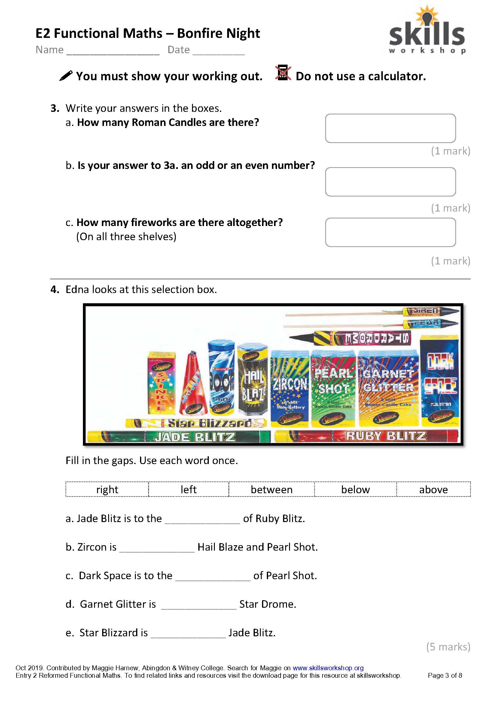 Bonfire Night Maths For Entry 2 Functional Skills Skillsworkshop