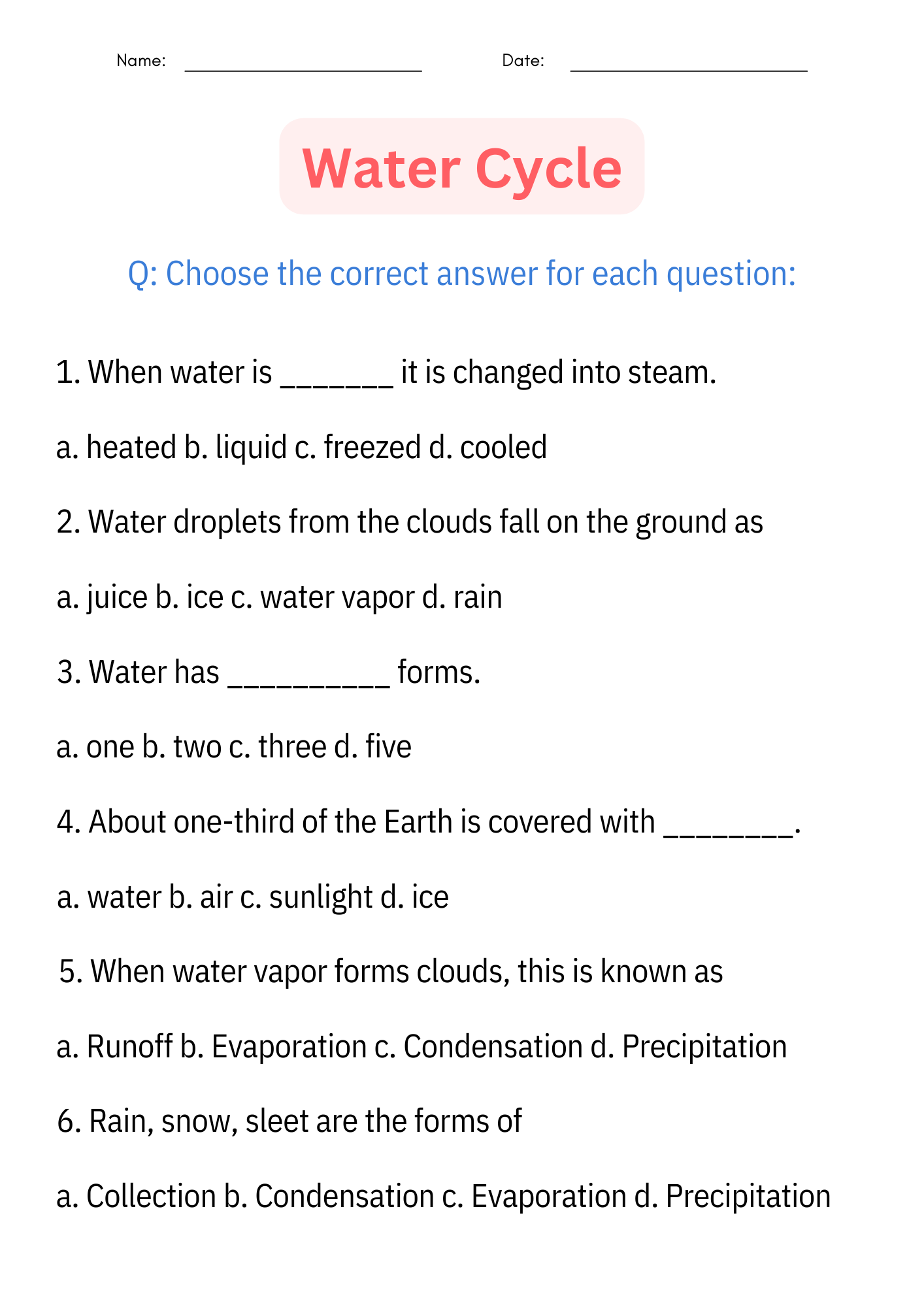 Grade 6 Science Free Printable Worksheets