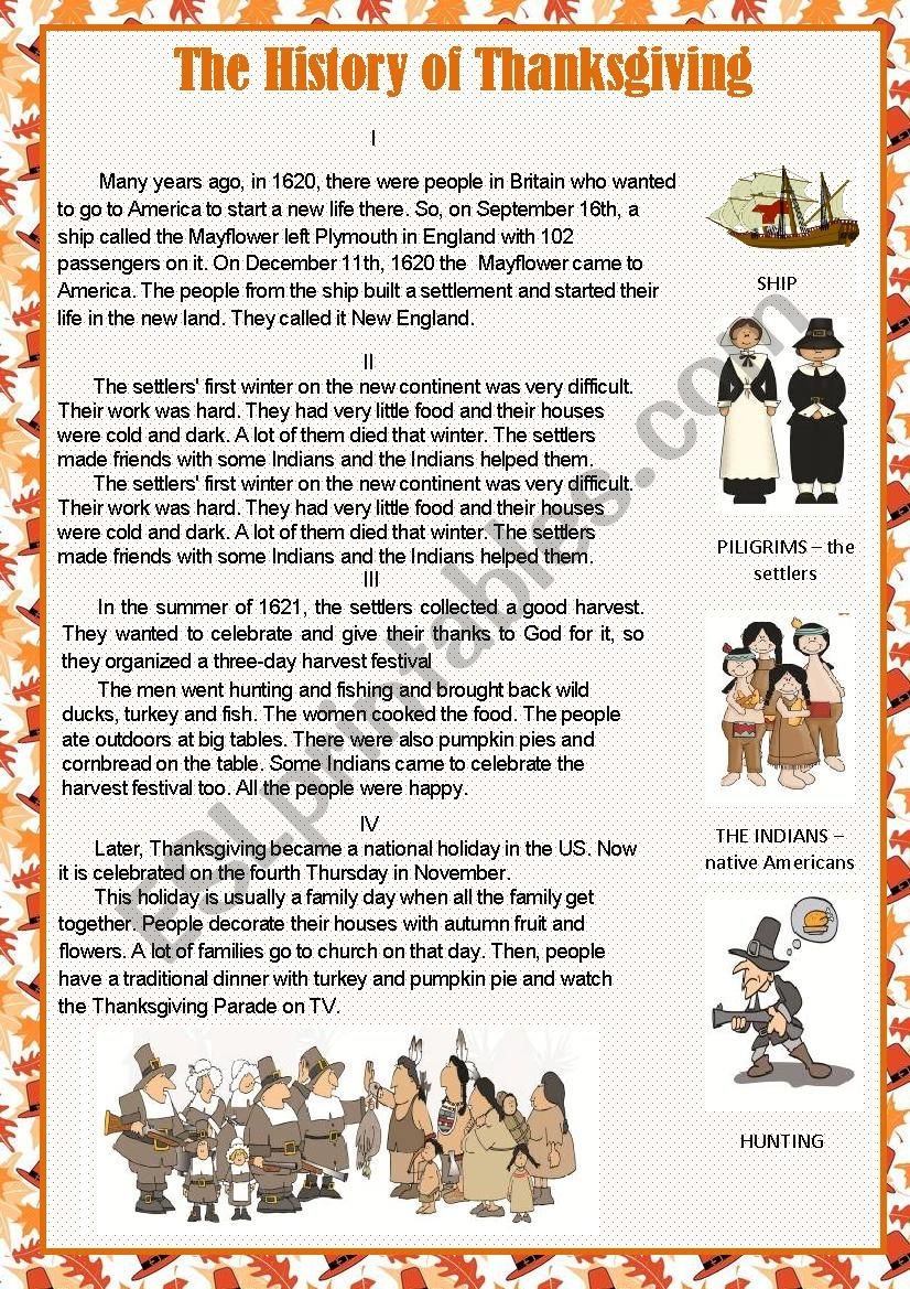 The History Of Thanksgiving ESL Worksheet By Lediti