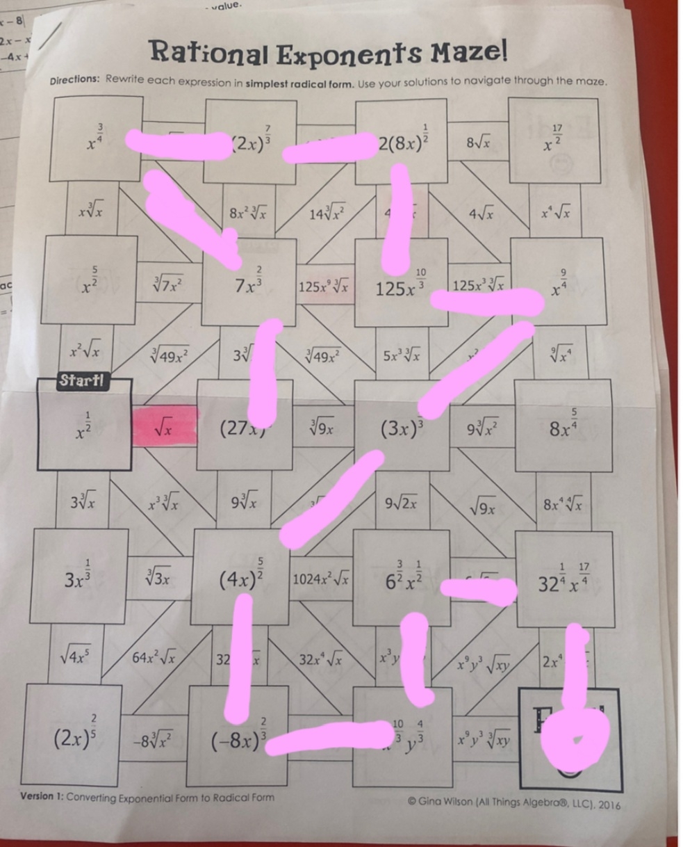 Laws Of Exponents Maze Worksheet