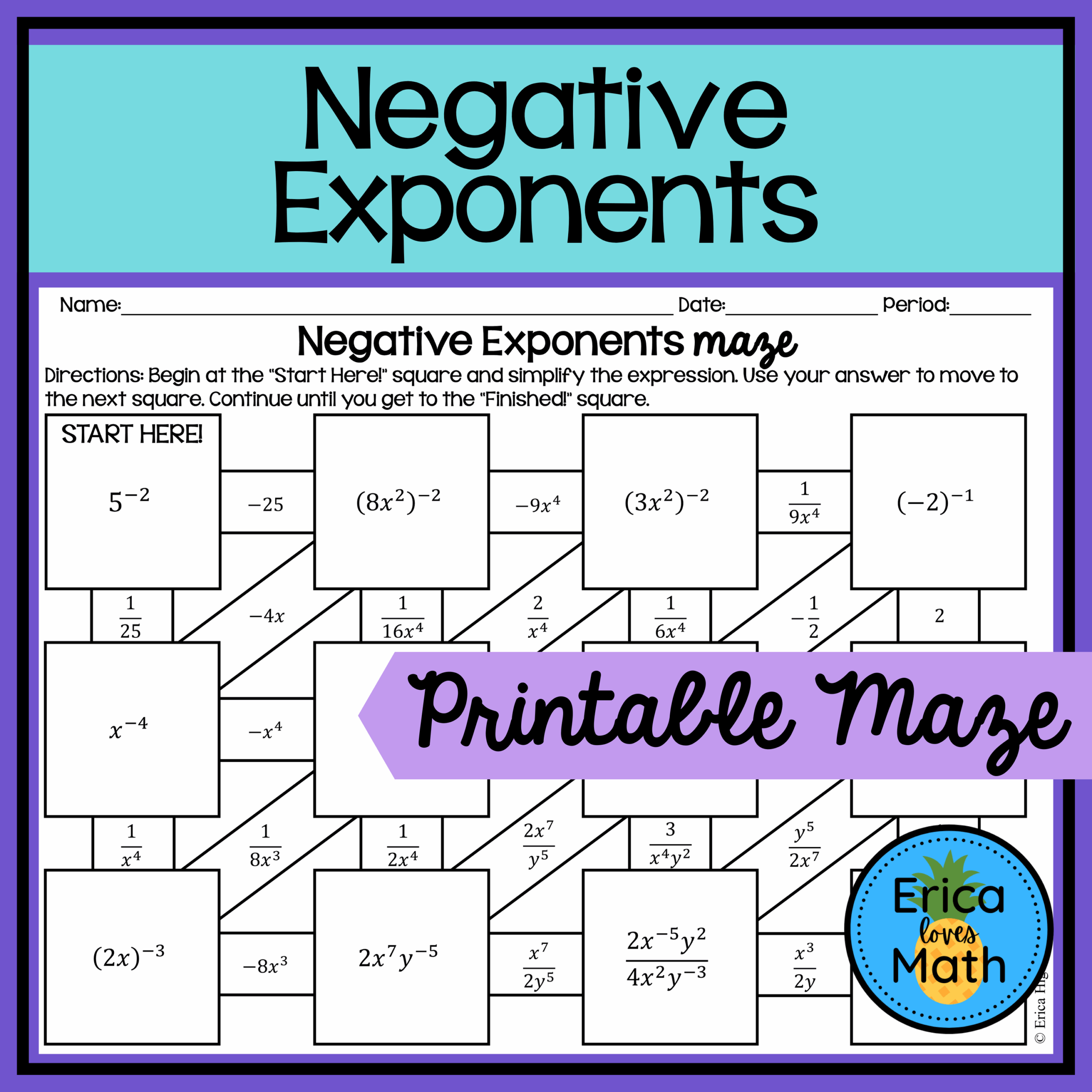 So, if you’re looking for a creative way to spice up your exponent lessons, give the Laws of Exponents Maze Worksheet a try. Your students will thank you for making learning math an enjoyable and interactive experience!