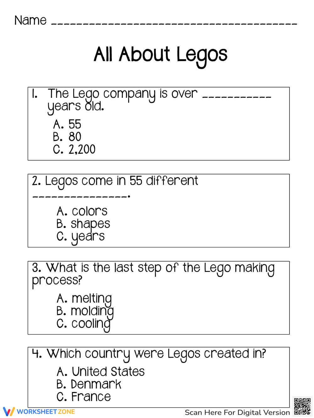 Lego Reading Comprehension Worksheets