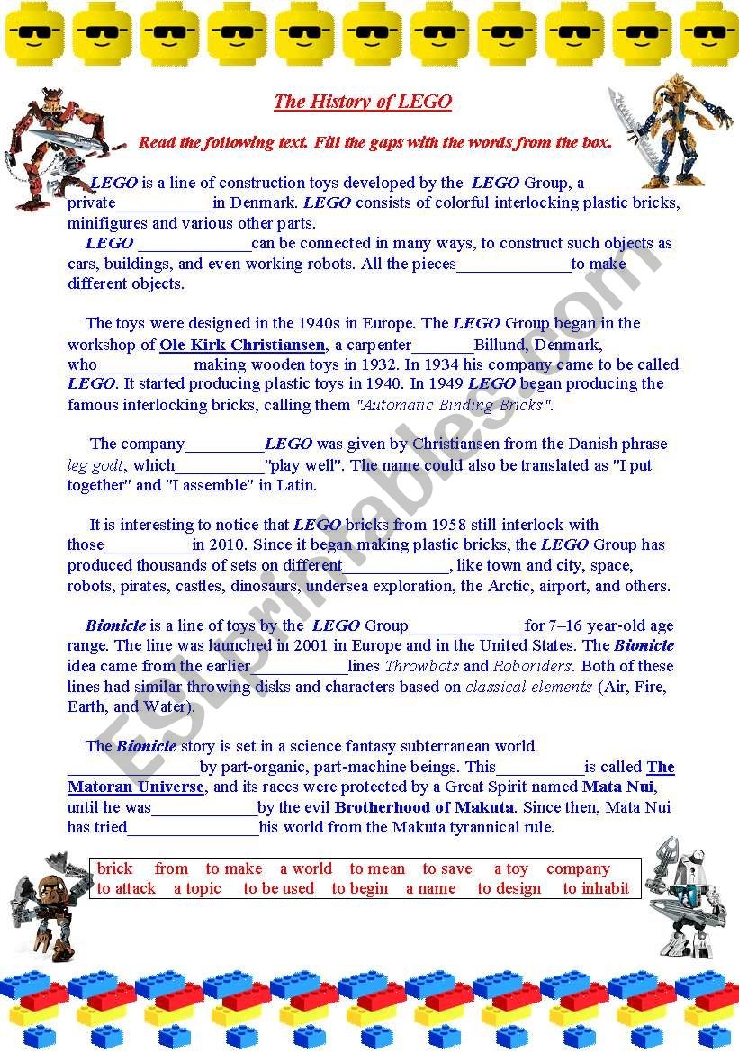 Reading Activity The History Of LEGO Fill The Gaps With The Right Word Answer The Questions Form The Questions ESL Worksheet By PetiteFleur