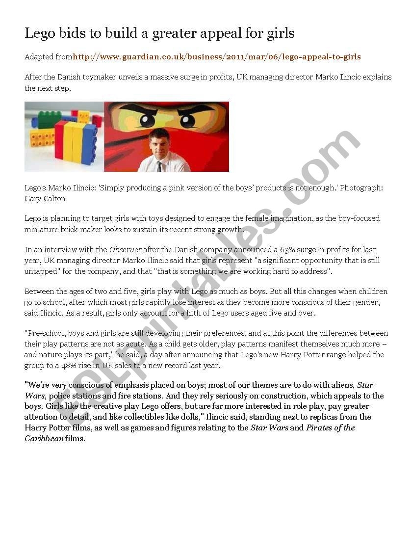 Reading Lego Bids To Build A Greater Appeal For Girls ESL Worksheet By MissBlanche