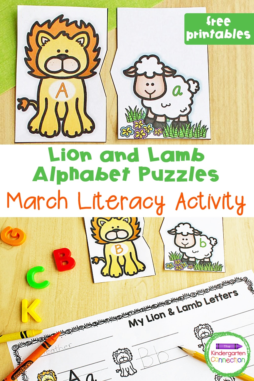 FREE Lion And Lamb Printable Alphabet Puzzles For March