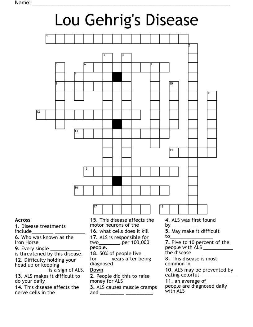 Lou Gehrig s Disease Crossword WordMint
