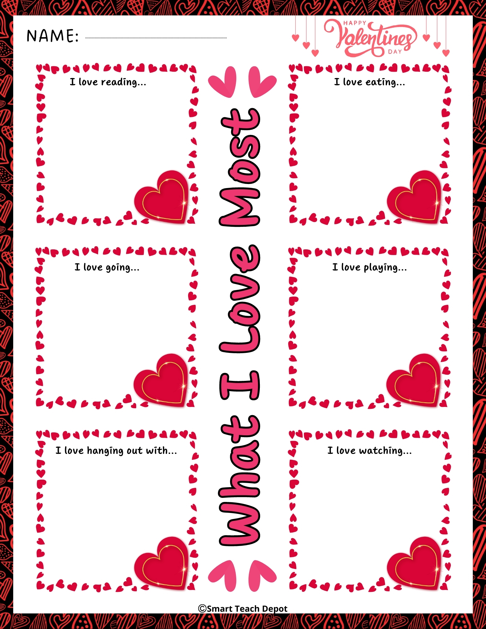 Heartfelt Joys What I Love Most Valentine s Day Activities Worksheet 8 5 11 Made By Teachers