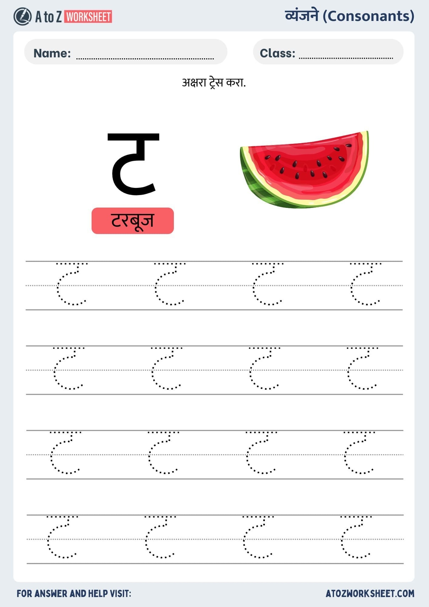 Marathi Alphabet Tracing Worksheet PDF A To Z Worksheet
